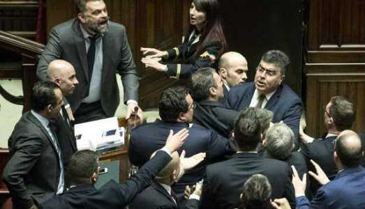 E così l’agenda politica del 2018 si chiude nella maniera più prevedibile, con urla, spintoni e sedute sospese. Atmosfera da stadio alla Camera per l’approvazione del maxiemendamento alla legge di bilancio presentato dal governo gialloverde, con le opposizioni che invocano la discussione di merito del disegno di legge e chiedono il ritorno in commissione Bilancio e la maggioranza che vota e boccia la richiesta. Se Vittorio Sgarbi (gruppo Misto) non l’ha certo mandata a dire, accusando i Cinque Stelle di «umiliare il Parlamento», Forza Italia ha pensato bene di spostare la questione sui social, lanciando l’hashtag #manovracontro.