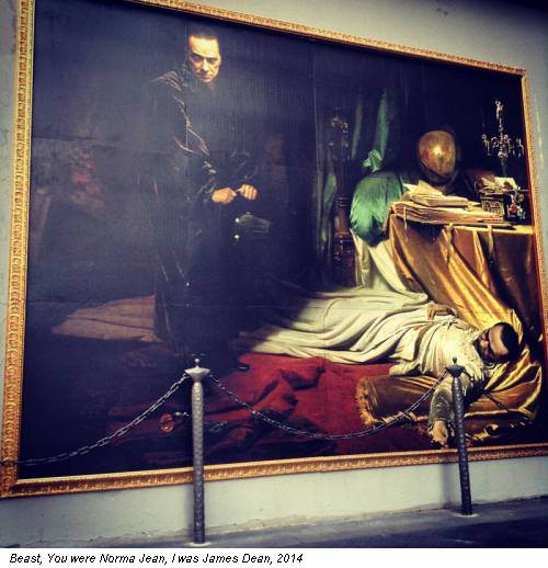 Un’occasione ghiotta per Beast, graffitista milanese, per raccontare a suo modo l’epopea ventennale del Cavaliere Silvio Berlusconi, recentemente assolto nel processo Ruby-gate, l’ennesimo nella sua “carriera”. Ma che ha fatto il nostro? Ha raffigurato Berlusconi sia come Wallenstein morto che come “spirito”, intitolando l’opera You were Norma Jean, I was James Dean (Tu eri Norma Jean [Marilyn Monroe n.d.r], io ero James Dean). Come nella migliore tradizione iconografica non si tratta di certo di una quadretto, ma di una “sberla” di 285 x 370 centimetri, che immediatamente ha attirato sguardi e sorrisi dei passanti, milanesi e turisti che, ancora una volta, hanno potuto rimarcare quanto l’Italia sia un Paese “giocoso” in fatto di politica e anche giuridicamente parlando. E anche autoironico, se così si può dire, anche se questa più che una satira racconta la strana e mostruosa epopea sociale di un’araba fenice.