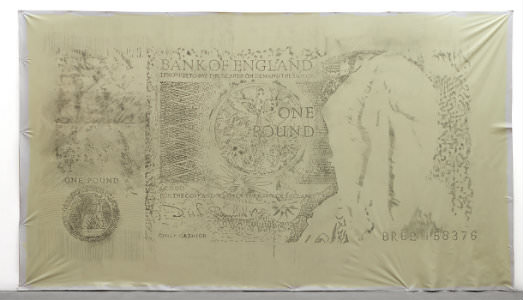 L’opera che dà il titolo al nuovo progetto, Half Dinar, è infatti un dipinto che riproduce una banconota libica in circolo negli anni Settanta e fuori formato, sulla quale è riprodotta l’immagine di una enorme raffineria, tra i simboli del panarabismo propugnato da Muʿammar Gheddafi. A fare da contraltare a questa immagine di propaganda, è La Nazione, un grande assemblaggio di vecchie insegne luminose, raccolte nel tempo dall’artista fiorentino in diversi luoghi del nostro Paese. Si tratta di una luce ormai fioca, timido e tragico riflesso di un’epoca di benessere e di boom economico, reale o presunto, sicuramente non duraturo e le cui drammatiche contraddizioni, oggi, sono a dir poco palesi.