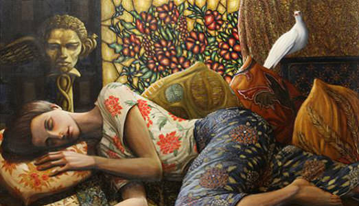 Nelle sue figurazioni, che seguirono presto un percorso autonomo e indipendente rispetto a quello degli altri “Anacronisti” – come, tra gli altri, ha evidenziato Edward Lucie-Smith – emergevano e si intrecciavano due vocazioni: da un lato quella del pittore colto e, dall’altro, quella del teorico di estetica.