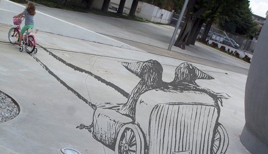 Sono atterrati in incognito quest’estate, in piazza Alighiero Boetti. Portano i nomi di Lorenzo Terranera, classe 1968 e autore degli sfondi dello studio del programma Ballarò, Fabio Magnasciutti, collaboratore da oltre 15 anni per Repubblica e Alessandro Ferraro, che da anni si occupa di comunicazione visiva. Tre personaggi che fanno, insomma, lo strano lavoro degli illustratori. Nella piazza del MAXXI hanno vissuto, sostato, osservato giovani, adulti e bambini per tutta l’estate. Hanno spiato gli addetti alla manutenzione, quelli dei lavori dell’arte, i curiosi e gli appassionati.