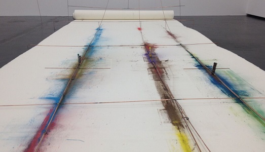In alto: Andreas Marti, We Were Here, 2015, paper, pencil, wire, wireless screwdriver, Dienstgebaude Art Space Zurigo