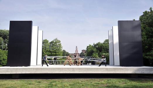 In alto: Alberto Burri, Teatro Continuo, 1973. L’opera è stata recuperata nell’ambito del progetto “nctm e l’arte”.