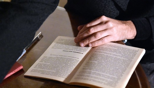 Tiziana Cera Rosco riporta le parole lette e dette da Giovanni Gaggia su supporti cartacei con l’intento di produrre, in una sinergia di idee e di intenti, un “lavoro” finale che rimarrà nella residenza Donati e sarà visibile da lunedì 23 novembre.