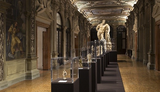 Al piano superiore, il portego al piano nobile del palazzo veneziano fa eco al giardino di Kassel, con la stanza dedicata alla prima delle variazioni dei calchi delle statue classiche, la Scala. Una delle copie dell’Ercole Farnese, alta tre metri, di cui manca l’originale, è ripetuto nove volte; nel giardino a Kassel è una figura all’apice di una cascata che ne ricorda le fatiche, qui la cascata è quella delle copie progressivamente ridotte fino alla serliana sul Canal Grande a una statuetta di ceramica di meno di venti centimetri. Poi un podio vuoto invita a salire, al centro del cono ottico e prospettico, e a guardare la ripetizione di scala della stessa figura. Come se i visitatori fossero l’origine di questa mise en abime e insieme il fine ultimo e anche la definitiva elisione di una origine e di un originale, definitivamente essi stesse copie di un canone. Una volta capito che si tratta di copie di copie, per ognuno dei processi di invenzione del Classico e della cultura dell’Europa moderna, c’è una stanza in cui un espositore leggero, di acciaio verniciato bianco, policarbonato e plexiglass in sezioni auree progettato dallo studio OMA, contiene le opere che definiscono i paradigmi della “mobilità” dell’estetica classica e rinascimentale europea e dell’occidente: dalla Iterazione al cambiamento di Dimensione, dalla Collezione alla variazione dei Materiali, dall’innovazione della Tecnologia alla mostra in dimensioni intimiste dello Studio.