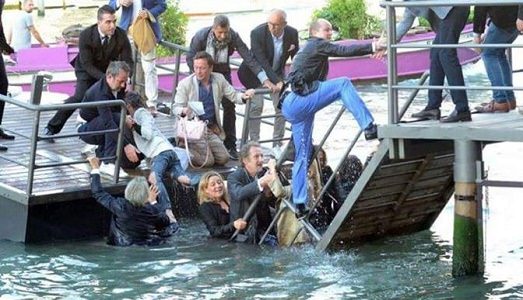 Venezia/La disavventura alla Fondazione Prada: in acqua una manciata di imbucati, per il crollo del pontile