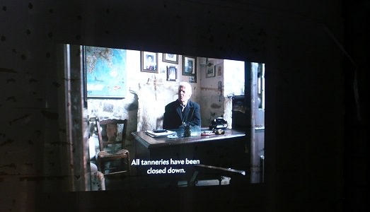 Tra le notizie attuali sulla Grecia – uscirà dall’euro, assolutamente no a detta dei più, ma come restarvi è questione tutt’altro che risolta – e questa macchina del tempo dislocata fra la pareti, alcune delle quali non ripristinate, di un padiglione nazionale, viene a generarsi comunque, sia voluto o meno, un certo rapporto. Qualcosa in entrambe le situazioni sembra riguardare una forma di resistenza al mutamento, soprattutto se vissuto come imposto dall’esterno, una viscosità di luoghi e abitudini, che rallentano il passo, lo sguardo, e che tentano di richiamarci verso regioni e ragioni d’esistenza che mal si combinano con l’attualità. Da Volos, luogo natio di Giorgio De Chirico, proviene questa capsula/negozio/laboratorio per la tassidermia (ancora attivo, pare) ricostruito con minuzia filologica. Si entra letteralmente nei vani di un interno, esposto allo sguardo indiscreto, distratto di visitatori che si ritrovano a considerare come le cose di  scarsa rilevanza, una volta portate qui, nel non-luogo dell’arte, assumano una evidenza sospesa, una densità che attira dentro, non solo nello spazio di un padiglione, ma dentro altre abitudini, altri rapporti con l’ambiente, con il lavoro.