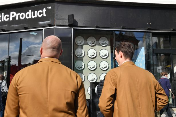 E come la mettiamo con il rischio di furti? Memore di quanto è successo a Parigi, Banksy ha preso le sue contromisure: qualcuno dice che quelle persone in trench marrone che girano intorno al negozio siano degli agenti di sicurezza in incognito.
