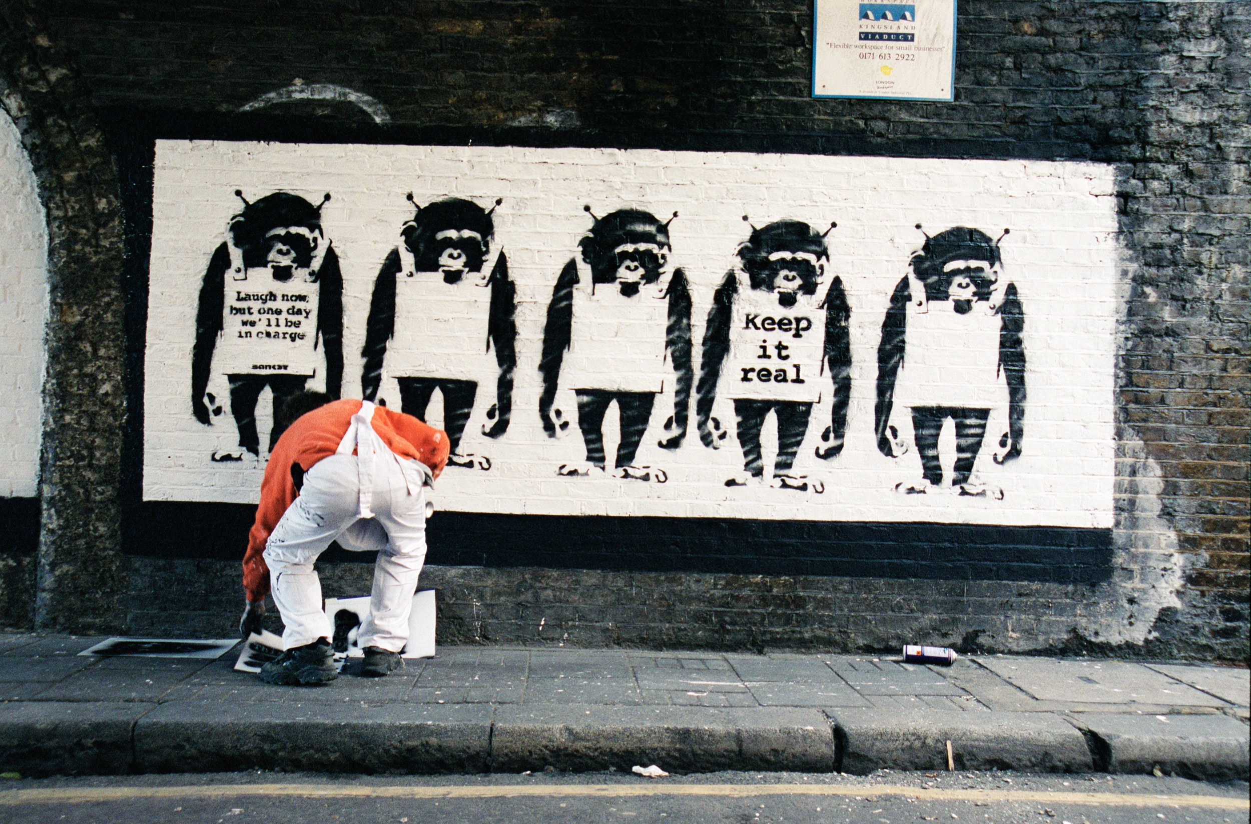 Banksy ha abolito questa struttura rimanendo anonimo ma questo anonimato è degenerato nella sovraesposizione, nel merchandising, dove non solo tutti possono “farlo” ma tutti possono “esserlo”. Se l’obiettivo era distruggere ultimi residui dei criteri di verità e autorialità il successo è assicurato.