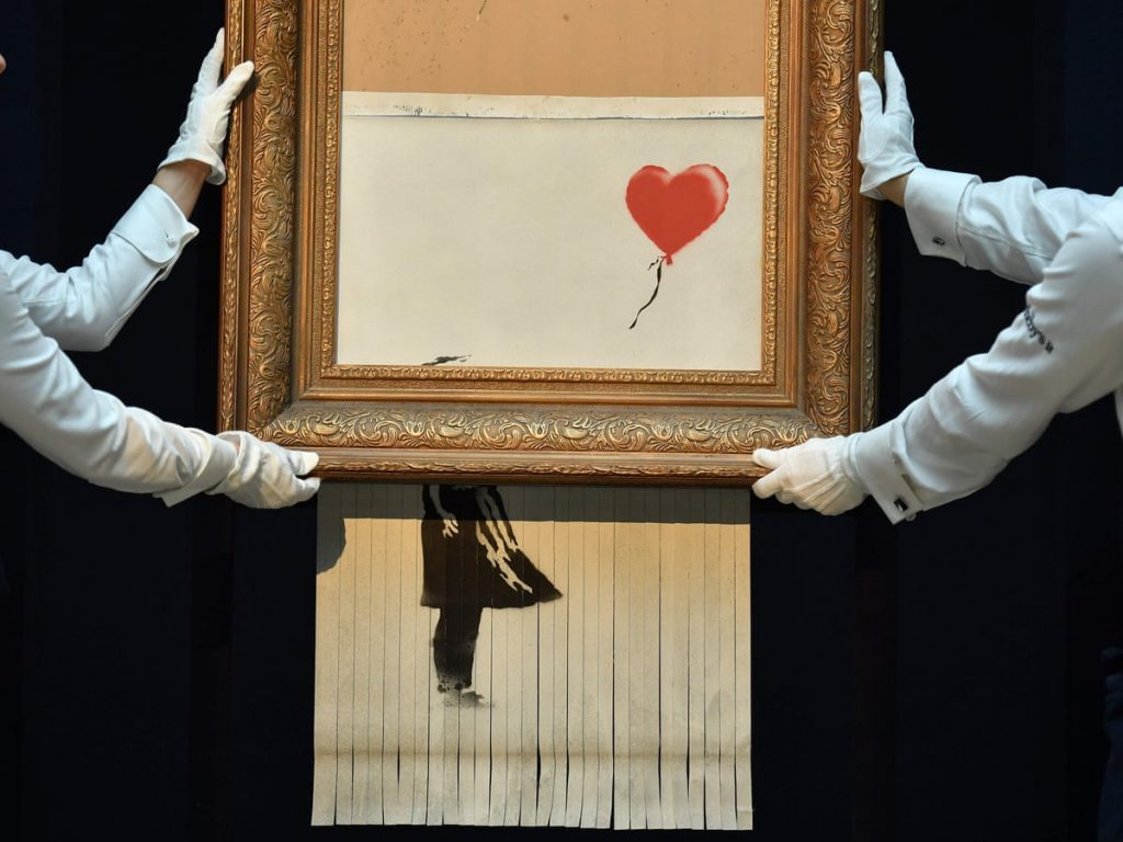 I suoi interventi sul muro di cemento eretto al confine tra stato di Israele e territori palestinesi, il suo luna park anti Disney world Dismaland, le intrusioni nei musei appendendo alle pareti dipinti sovversivi e ironici, i graffiti sui muri pubblici per cui si levano dibattitti se restaurarli o meno, considerarli atti vandalici o opere d’arte, fino all’opera capace di tagliarsi a fettine durante un’asta e aumentare così il suo valore: tutto questo ci ha esaltato, divertito, fatto pensare, posto interrogativi. Sull’arte e il sistema dell’arte, sul diritto di autore e di proprietà, sul mercato, su ciò che è lecito o meno e sull’arbitrarietà di questi parametri nell’arte, soprattutto contemporanea, sempre più fluidi, inesistenti, vuoti.