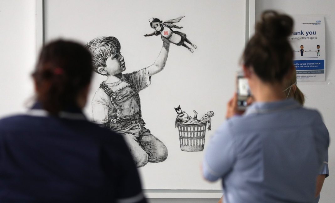 La sua ultima uscita non è piaciuta a tutti ma qualcuno ha provato ugualmente a fare il colpo. Un uomo è stato fermato nel tentativo di rubare l’opera che Banksy aveva regalato, poche settimane fa, al General Hospital di Southampton. L’opera, che rappresenta un omaggio al personale medico e sanitario, considerati i nuovi supereroi del Coronavirus, rimarrà esposta nell’ospedale fino all’autunno prossimo, quando sarà messa all’asta per raccogliere fondi per l’NHS – National Health Service. Ma evidentemente c’è chi preferisce la beneficenza individuale.