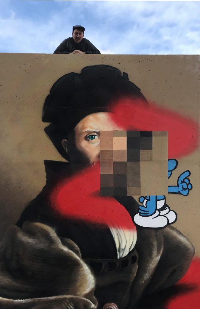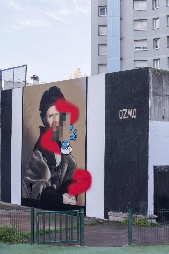 L’opera proposta dall’artista italiano per la città Saint’Ouen è un murale ispirato a Il cortegiano, capolavoro in cui Raffaello Sanzio ritrae Baldassare Castiglione, intellettuale di spicco del Rinascimento italiano, alla corte di Elisabetta Gonzaga a Urbino e autore dell’omonimo trattato sulle norme del perfetto uomo di corte, volume di tale successo che lo stesso Francesco I re di Francia ne rimase impressionato, la fece tradurre e distribuire a ciascuno dei suoi cortigiani. Ozmo ha quindi ideato una reinterpretazione del Cortegiano, con l’aggiunta di layers che dialogano aprendo nuovi significati semantici e concettuali all’opera.