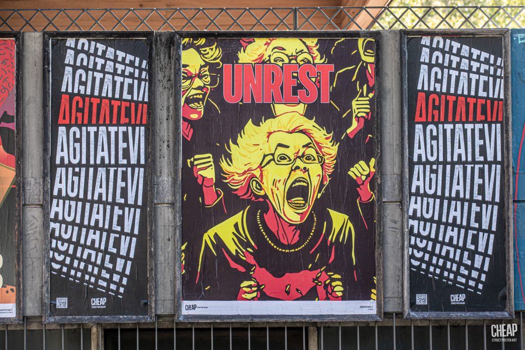 Tanti i linguaggi che si incrociano nello spazio pubblico, grafica, illustrazione, lettering, fotografia, collage e tecniche miste, per esprimere un invito che è anche l’augurio fatto da CHEAP a inizio 2023: AGITATEVI! «Un invito, che partendo da Gramsci, diventa un’evocazione di pratiche, di immaginari, di ribellioni quotidiane o resistenze possibili e si moltiplica in centinaia di poster che se da una parte restituiscono una riflessione collettiva sul mondo odierno, dall’altra agiscono una riappropriazione collettiva di spazio e discorso pubblico». Tutti i nomi delle artiste e degli artisti selezionati e le location dell’installazione in strada sono visibili a questo link.