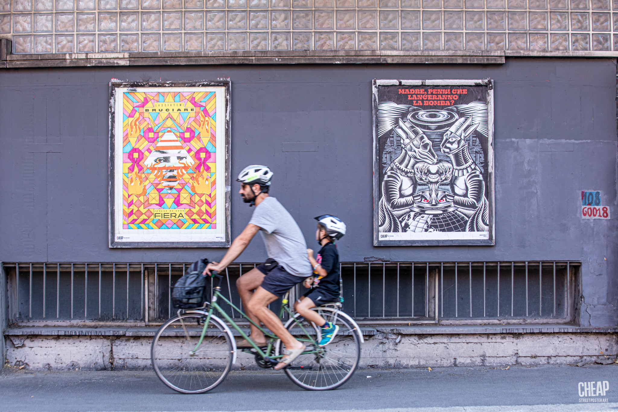 Le strade di Bologna tornano a riempirsi di immagini, forme, colori e messaggi, anzi, di inviti ad agitarsi. Sono 175 i poster affissi nello spazio pubblico della città, visibili per il prossimo mese in 22 zone dal centro alla periferia. Stampati a colori su grande formato, portano le voci, le idee e le suggestioni di 156 artiste e artisti internazionali selezionati a seguito della undicesima calla for artist di CHEAP. Fondato a Bologna nel 2013 come festival, negli anni CHEAP è diventato una piattaforma indipendente e attiva su più livelli, dedicata alla promozione della Street Art come strumento di rigenerazione urbana e indagine del territorio.