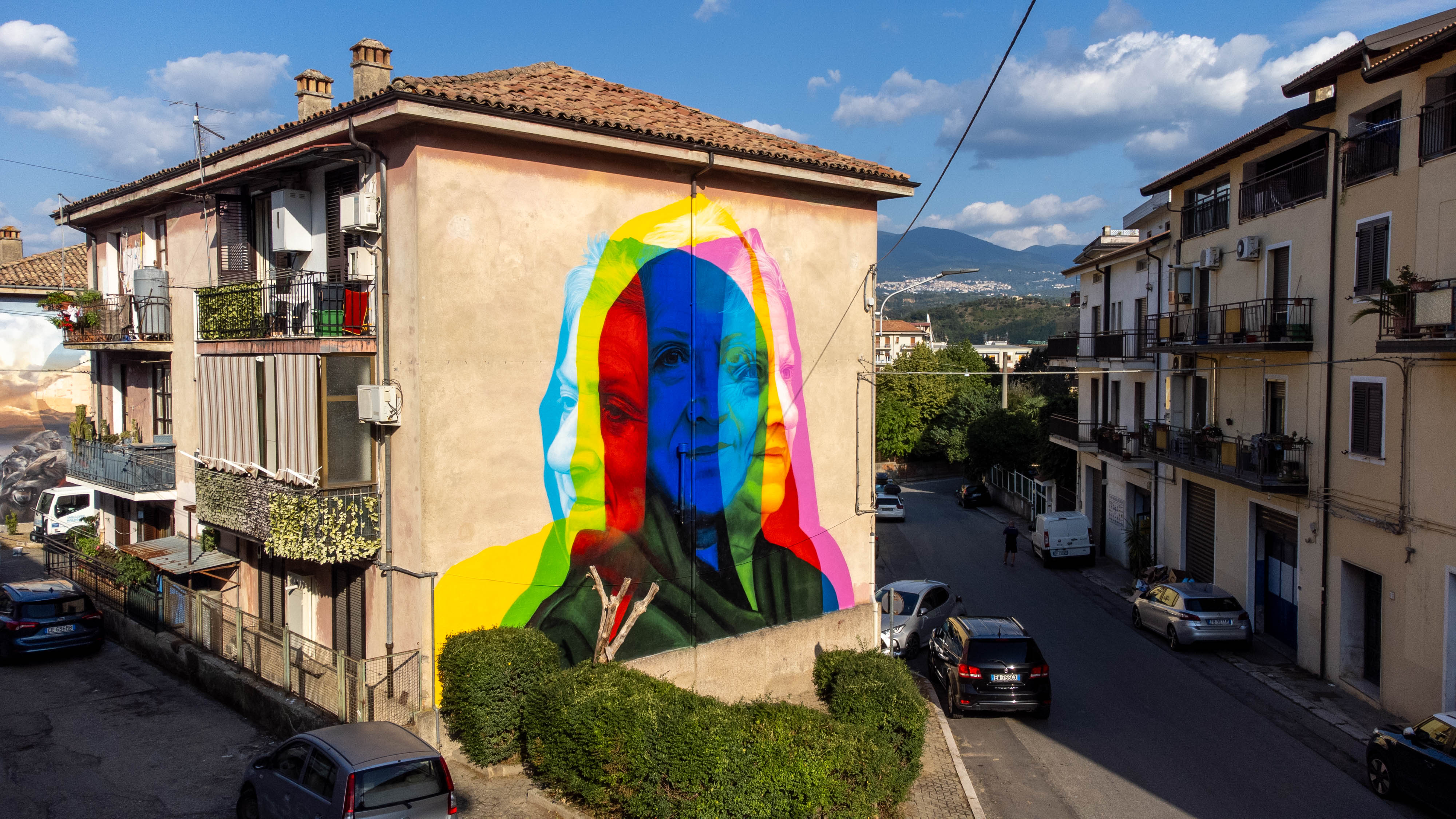 Aches, muralista irlandese, ha ritratto la signora Anna, donna che vive nel quartiere da molti anni e ne incarna perfettamente la sua essenza, mentre il Dùo Amazonas, alias della coppia femminile di street-artist composta dall’argentina Nati Andreoli e dalla colombiana Lina Castellanos, hanno riportato su muro l’ultima scena tratta dal film Thelma & Louise, con l’intento di sottolineare l’importanza dell’amicizia tra donne, spesso caratterizzata da una complicità che gli uomini non sempre riescono a comprendere, e dalla necessità di libertà. Slim Safont e Taxis hanno unito i loro differenti stili visivi per realizzare un’opera che è una potente fotografia del territorio, Panda Is Forever. Tony Gallo ha invece realizzato l’opera dal titolo Anche i fiori vogliono parlare, una poesia visiva che mette in evidenza la mancanza di dialogo che a volte emerge tra persone vicine. Vesod ha attinto a piene mani dal suo linguaggio visivo, in cui il tempo, chiuso in forme solide immateriali, si cristallizza per rivisitare l’idea dell’eterno presente: nel suo lavoro la figura centrale, una donna, protegge un agnellino da un branco di lupi, animale simbolo della città di Cosenza.