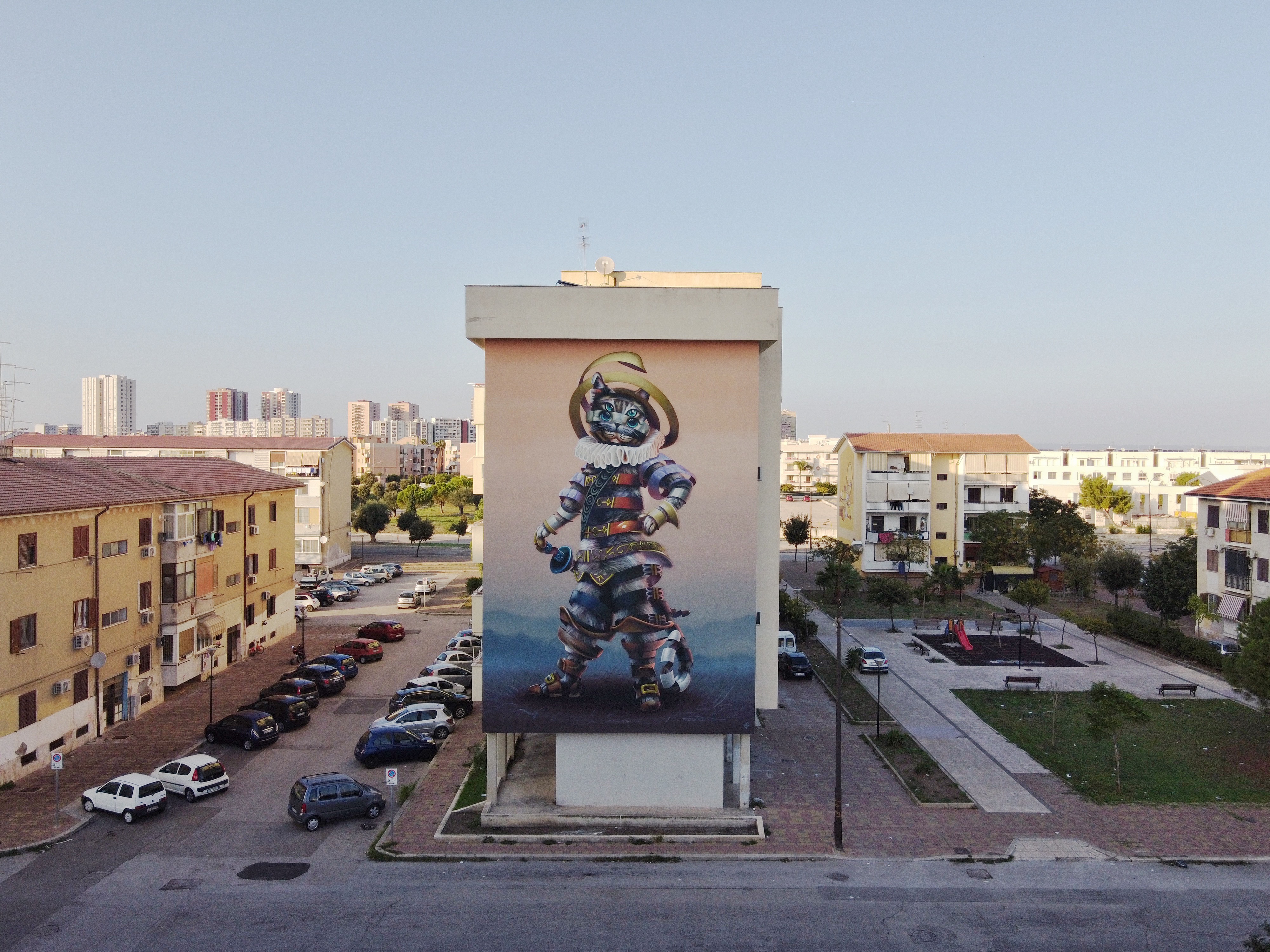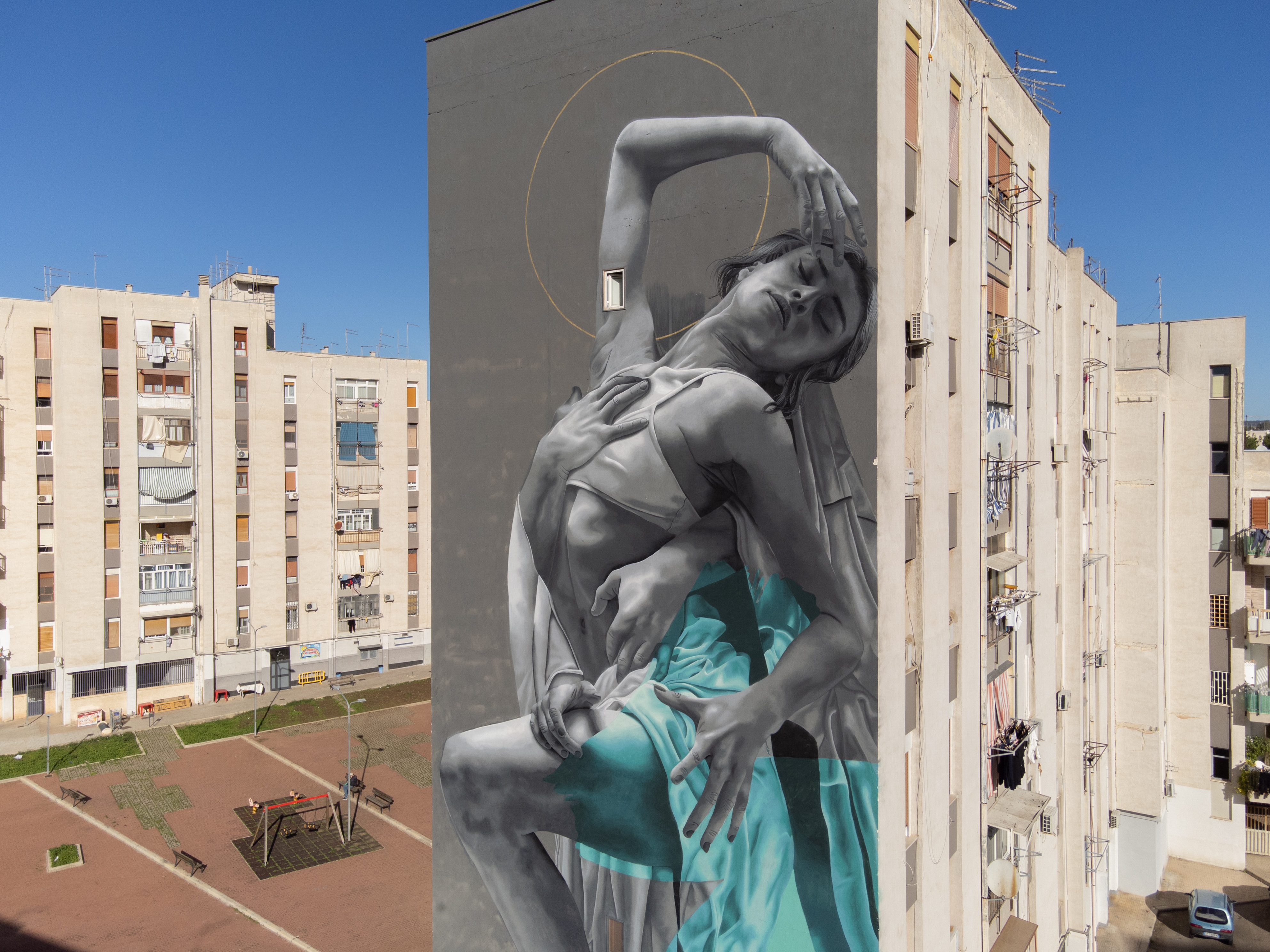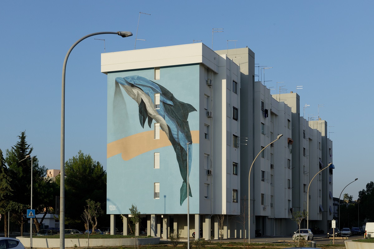 Troviamo poi Joys, che gioca con linee e colori, creando giochi prospettici, il surrealismo magico di Alessandra Carloni e Vesod, uno degli street artist italiani più interessanti, capace di giocare con stili e dinamiche diverse volgendosi la materia su piani astratti e figurativi. Direttamente dall’Irlanda, Aches regala alla città pugliese un’opera creata dall’utilizzo di tecniche dei sub-pixel, con la teoria additiva del colore, creando qualcosa di eccezionale. IOTA, dal Belgio, stupisce con la sua capacità nel rappresentare la delicatezza espressiva del corpo umano. Infine Dadospuntocero, dalla Spagna, mira tramite il suo iperrealismo a sensibilizzare verso temi come il cambiamento climatico.