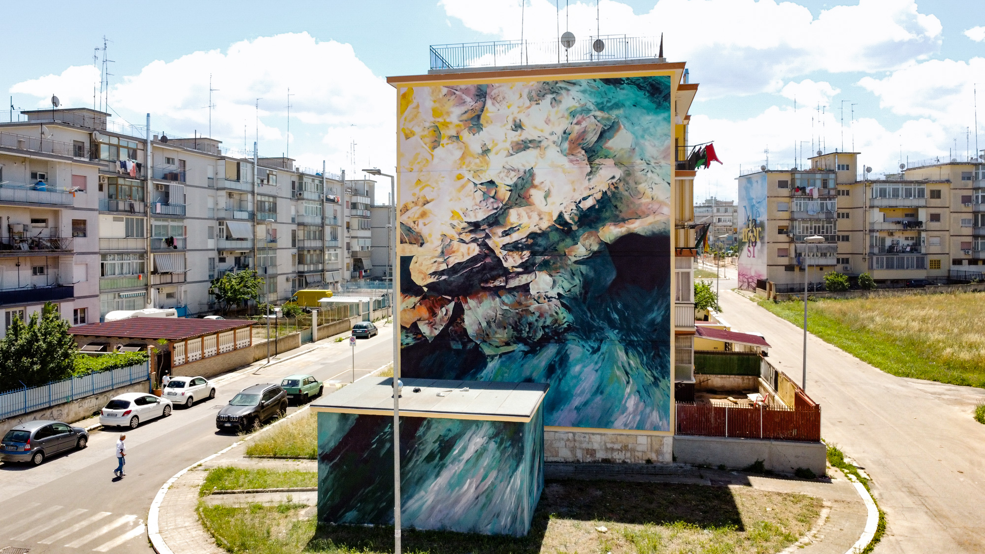 Cheone, nell’immagine di un bambino che gioca e sembra voler crescere e uscire dal muro del San Paolo di Bari, vede il domani. Nel mare alle sue spalle, che è tema attualissimo per la salvaguardia del futuro di quel bambino e di tutte e tutti noi. Quel mare che può essere campo di battaglia o elemento di pace che unisce e significa accoglienza, come i baresi sanno bene. È qui il futuro. In quest’opera dell’artista Cheone che sconfina tridimensionalmente nello spazio di chi osserva, creando una vera e propria interazione, una vertigine emotiva. Un’opera che travalica l’aspetto estetico e ci interroga, e ci espone emotivamente.