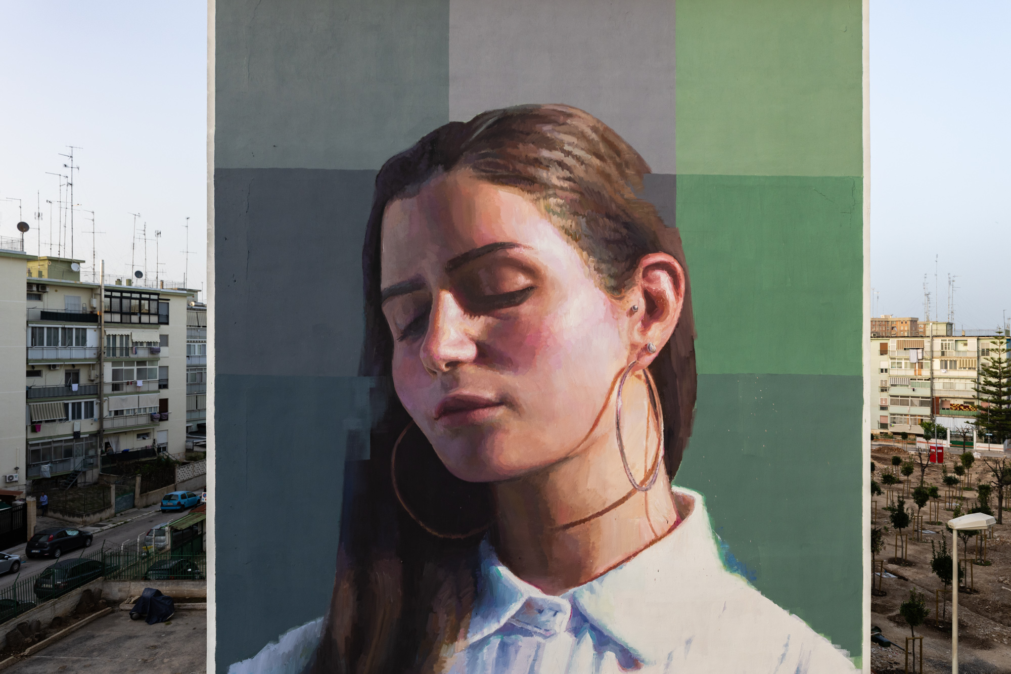 L’aspetto religioso, richiesto più volte dai residenti del quartiere, è stato esplorato dagli artisti Slim Safont e Nian che hanno rappresentato due versioni di Santa Rita. Slim Safont, per esempio, ha visto la Santa nel volto di una giovane donna di San Paolo. Nel suo sguardo, l’artista, ha visto un ponte tra passato e futuro, tra sacro e profano, tra estetica e verità. La santa dei casi impossibili, che assume le fattezze di una ragazza come tante, che in queste strade vive le gioie della sua età e affronta quotidiane battaglie. Sul muro di SanPArt la visione di un artista internazionale e il volto comune di una periferia che cerca riscatto. La santità e allo stesso tempo la possibilità di ognuno di riconoscersi, di dire “ci sono anch’io”.