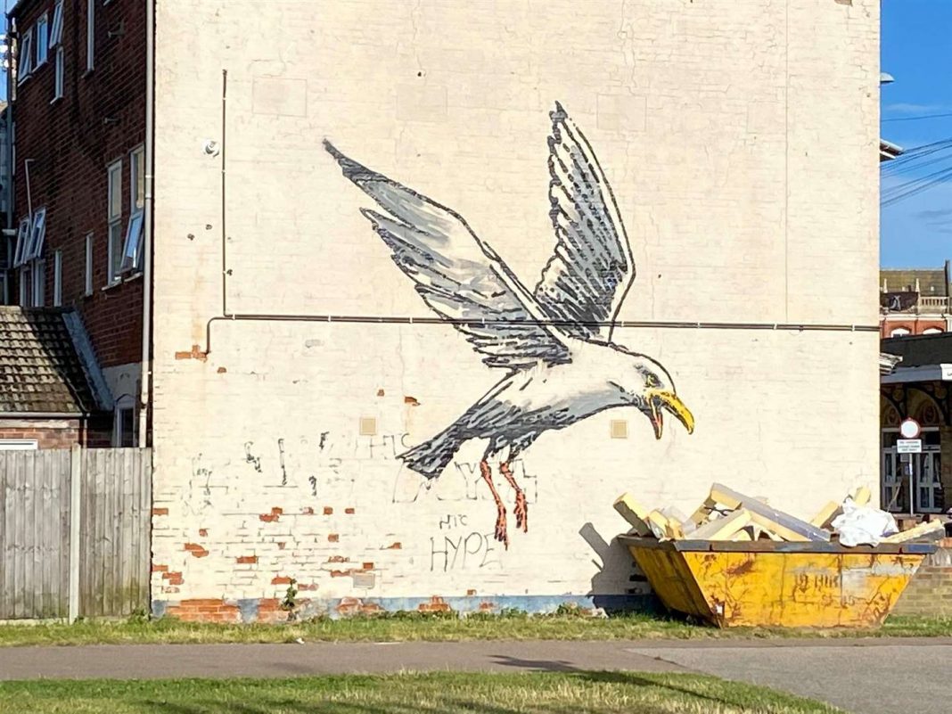 L’opera risale all’agosto del 2021 e rappresenta un grande gabbiano golosamente interessato al contenuto di un cassonetto dell’immondizia (un cassonetto reale). Il lavoro fa parte della serie “Great British Spraycation” diffusa in varie città dell’Inghilterra orientale, tra le cittadine di Great Yarmouth, Oulton Broad, Gorleston-on-Sea, Cromer, King’s Lynn e, appunto, Lowestoft, centro abitato più orientale dell’intero Regno Unito e rinomato per le spiagge. Sulle prime, gli inquilini dell’edificio credevano si trattasse di lavori di manutenzione, poi, una svolta smontate le impalcature, la sorpresa che, alla fine, non è stata tanto gradita. Come capita sempre in questi casi, l’opera di Banksy diventò subito virale, attirando centinaia di visitatori e gonfiando il valore della proprietà. Ma ha portato anche una controparte di problemi.
