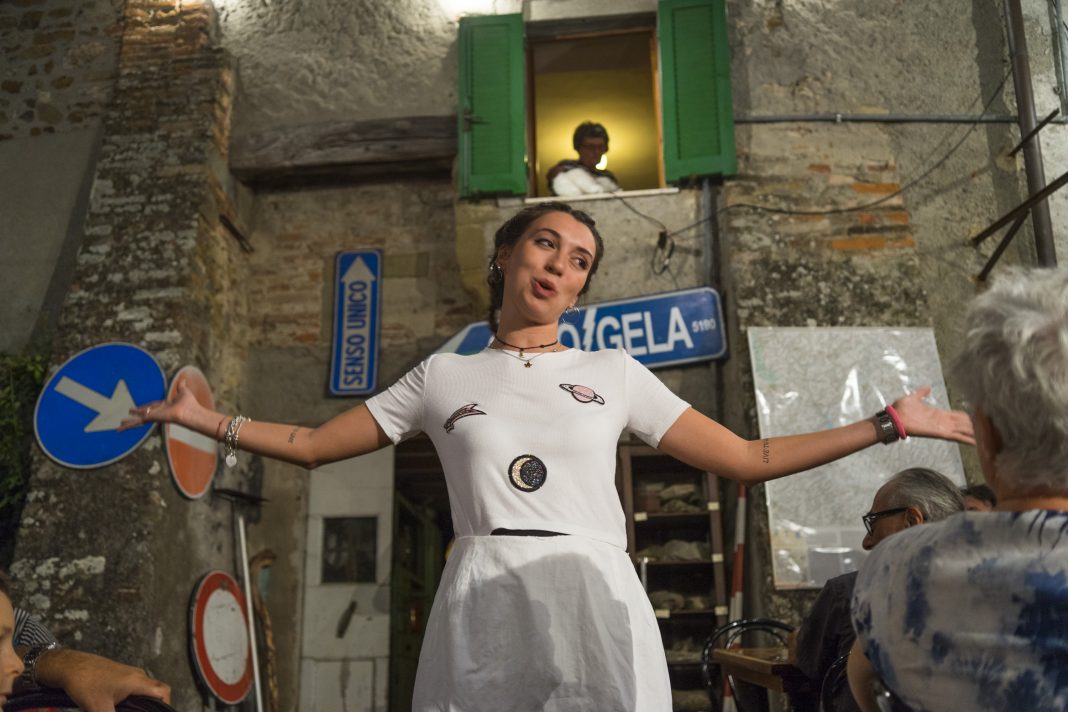 Venendo da nord, a cavallo tra Emilia Romagna, Marche e Umbria, si incontra Anghiari, facilmente raggiungibile con la E45 quando non è bloccata per frane, grandine, lavori in corso. In uno tra i borghi più belli d’Italia, nella provincia di Arezzo con 5.561 abitanti, si svolge da 24 anni “Tovaglia a Quadri”, un festival di teatro in cui ogni sera per 10 giorni (quest’anno dal 10 al 19 agosto) centotrenta ospiti assistono a un racconto mentre gli viene servita una tipica cena toscana, con tanto di bringoli al sugo finto e cantucci. Ad andare in scena sono proprio gli abitanti con un testo di Andrea Merendelli e Paolo Pennacchini che, ispirati dagli avvenimenti e problematicità locali, individuano un tema da condividere con i propri commensali. In un piccolo paese tagliato fuori dalla rete ferroviaria e con un precario collegamento stradale, la transumanza, la migrazione delle pecore in giro per la Toscana, diventa metafora della ricerca di una nuova via da percorrere: senza rimpianti per il passato e consapevoli che non ci si può più adagiare su glorie vissute, è arrivato il momento per gli abitanti di trovare un percorso alternativo, magari senza buchi e senza crolli, per pensare al futuro – e alle prossime elezioni – senza paura e con fiducia.