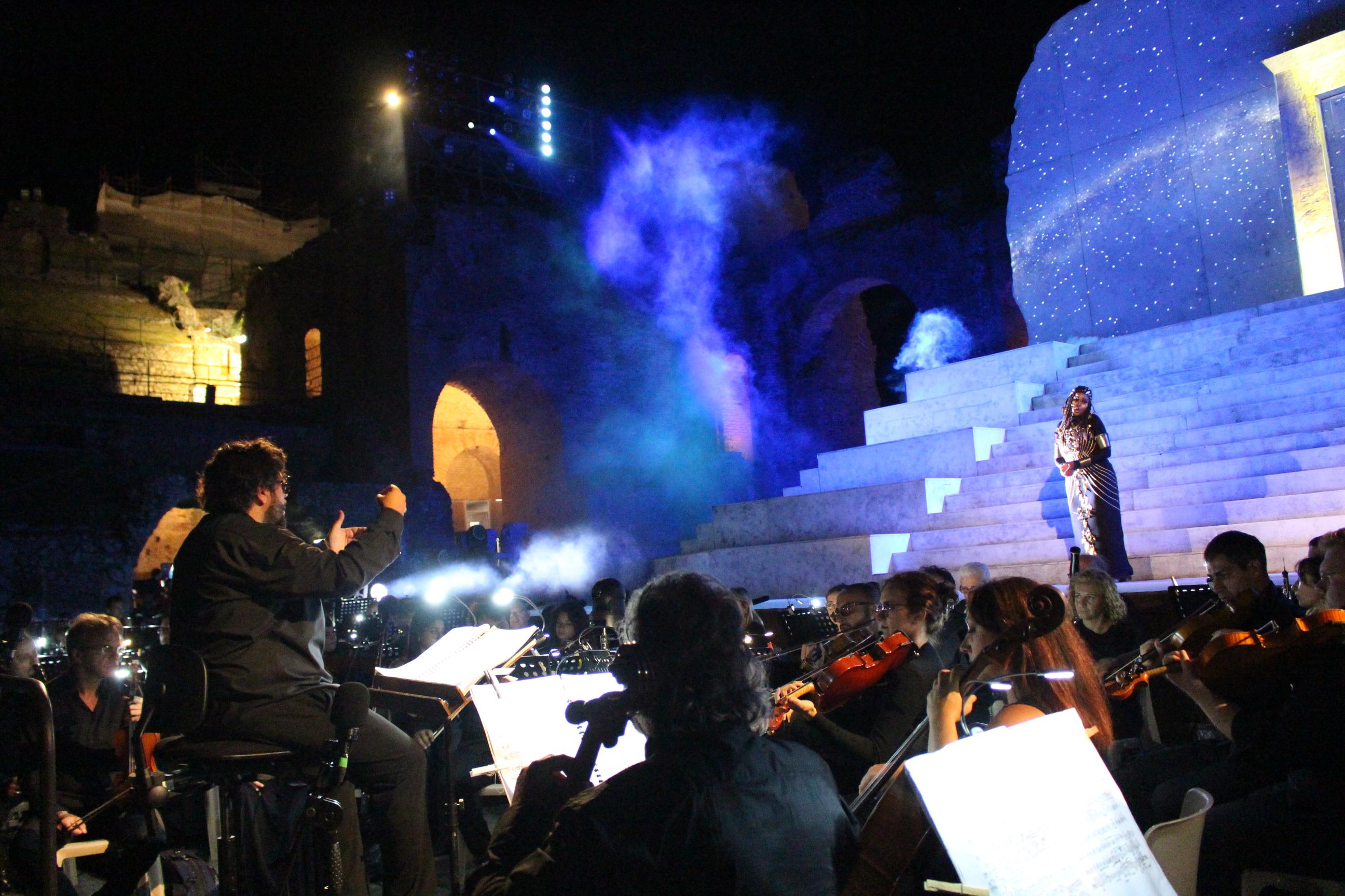 L’orchestrazione raffinata del direttore, pianista e accademico calabrese Arlia alla guida dell’Orchestra Filarmonica della Calabria e del Coro Lirico Siciliano; i torrenti di melodie che si imprimono nella memoria per le voci di un cast internazionale di assoluto rilievo, a partire dal soprano sudafricano Pumeza Matshikiza nel ruolo della protagonista; le passioni veementi che arrivano al cuore; i colpi di scena di effetto teatrale, con le danze leggere, le marce squillanti, i cori di gloria. Tutto questo fa dei quattro atti del melodramma in scena a Taormina, un magico, unico, evento.