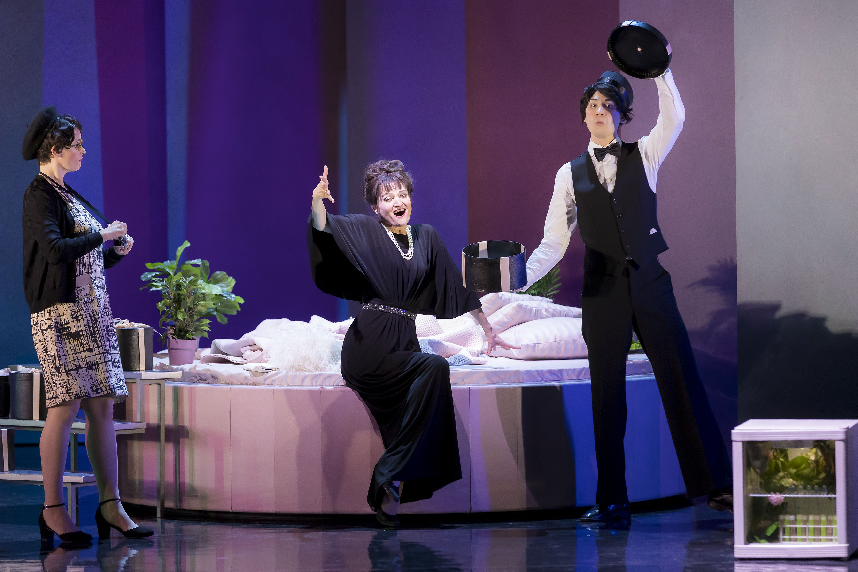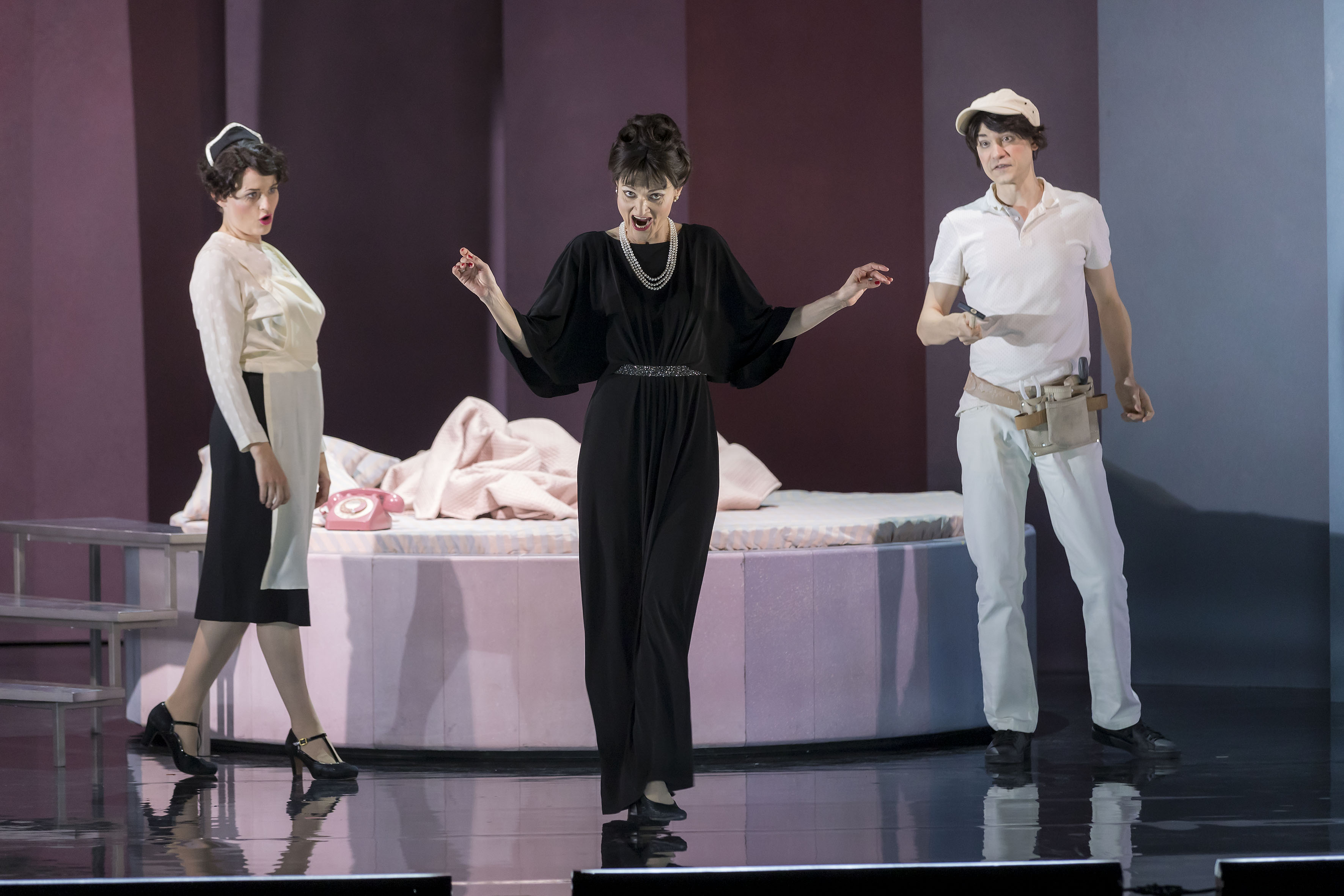 Molto è affidato alla capacità di resa strumentale di 15 esecutori, parti reali che devono destreggiarsi fra cambi di clarinetti e sassofoni, o di ammennicoli vari per creare effetti umoristici. I membri dell’Orchestra Haydn assolvono molto bene al compito sotto l’esperta direzione di Timothy Redmond. La regia di Julien Chavaz per la Nouvel Opéra Fribourg è un gioiello di efficacia e buon gusto. Efficacia perché sfrutta nel modo migliore lo spazio claustrofobico, scenico e metaforico – una vicenda che si consuma nei decenni dominata da un’ossessione -, così come richiesto dalla partitura, che affida la parte vocale a soli quattro cantanti, tre dei quali con ruoli multipli. Buon gusto perché le prevedibili situazioni “pecorecce” vengono presentate senza necessariamente calcar la mano sul voyeurismo. Sono invece piaciute e perfettamente in sintonia con l’impianto registro scene e costumi, schematici ma sempre vividi, di Annelise Neudecker e Severine Besson, bontà cui han concorso le luci di Eloi Gianini. Giusto infine segnalare la bravura quasi fregoliana, unita a proprietà di presenza vocale, di Alison Scherzer, Graeme Danby e Timur, ciascuno impegnato in ben quattro ruoli differenti, mentre Sophie Marilley cantava ansie e lamenti della sola Duchessa. Unica pecca, nella replica del 26, lo scarso pubblico: evidentemente la formula dei titoli concentrati in un festival di poche settimane non paga, oltre a relegare in un ghetto creazione e produzione contemporanea.
