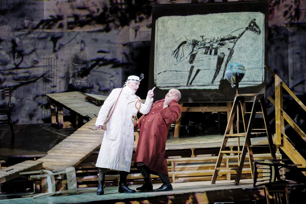 Spettacolo anche qui preso per i capelli, ultima recita del 30 marzo. William Kentridge firmava regia e scene. Il segno dell’artista sudafricano trasferito in teatro è a tutti noto. Si ricorderà, fra le altre cose, proprio di Berg, una Lulu romana del 2017. Scena fissa ricomposta di volta in volta nel susseguirsi dei tre atti di cinque scene ciascuno.