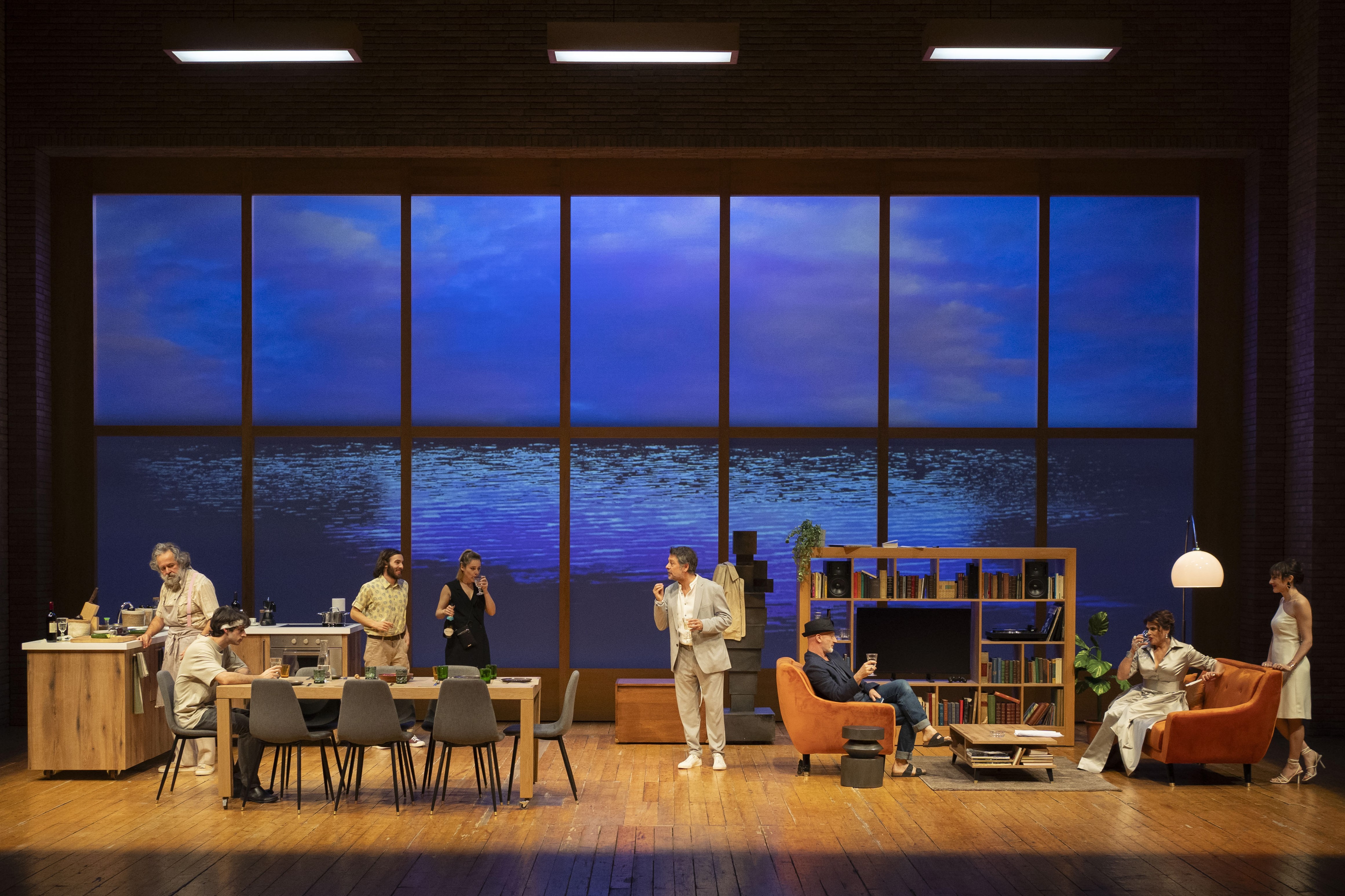 Parlano e vestono come noi tutti i personaggi di Come tremano le cose riflesse nell’acqua (čajka), che la regia colloca dentro un moderno e ampio spazio domestico – che è cucina, studio, salotto, sala da pranzo -, e spesso rivolti verso il fondale con la lunga vetrata dove appare il riverbero dell’acqua di un lago, quasi un personaggio, che Čechov descrive nel suo testo. È il lago, spazio fisico e mentale, sempre presente negli occhi e nel discorrere dei dialoghi, a influenzare e stregare le esistenze di quel manipolo di infelici che ancora oggi avvertono l’inadeguatezza della vita. Quel che si dicono e quel che sentono viaggiano in malate asincronie. Sono, le loro, conversazioni piene di solitudine, nel tormento di essere quello che vorrebbero essere e non sono. Čechov li ha fissati mirabilmente, per quella sua capacità di ritrarre l’analisi profonda della condizione umana, mettendo al centro della scena i conflitti generazionali e la ricerca di nuove forme di fare teatro, di scrivere.