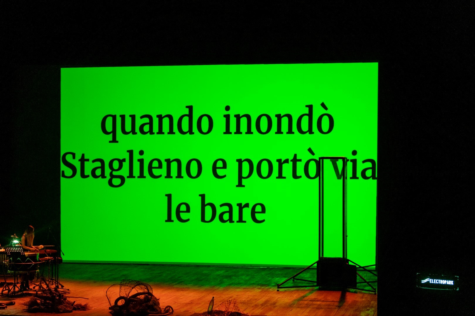 Il 13 novembre 2021 va in scena Corpi idrici – Sinfonia da una città, parte della lunga programmazione di Electropark (ne abbiamo parlato qui); prodotto da Forevergreen.fm e co-prodotto da Fondazione G. Feltrinelli di Milano, con la direzione artistica di Mazzone e Daneri. Data non casuale, ma che cade proprio al termine dei lavori della COP26 sul clima, a Glasgow. Come tutto sommato non è casuale nemmeno il luogo, un punto “caldo” come il Teatro Ivo Chiesa – Teatro Nazionale di Genova; con le sue fondamenta proprio in prossimità del tombamento del torrente Bisagno, opera che ha fortemente impattato sull’assetto idrogeologico della città. Al contrario, casualità ha voluto che per l’entrée i Corpi idrici scegliessero il giorno perfetto: una sera di pioggia battente e allerta gialla in corso.