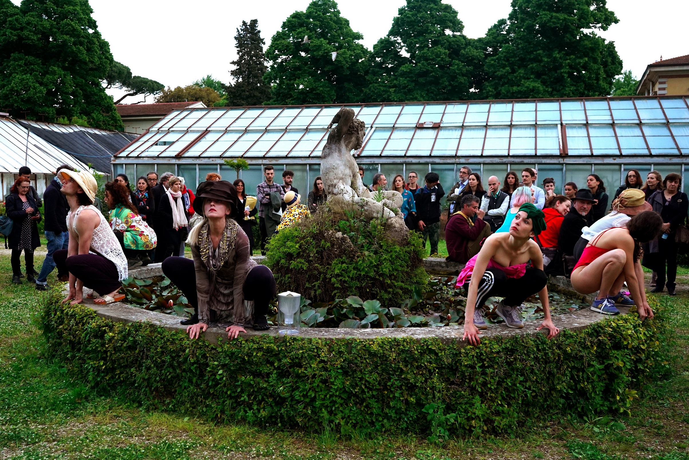 Nell’incantevole giardino dell’Istituto Agrario di Firenze, limitrofo al Parc, sede di Fabbrica Europa, si è svolta la performance itinerante Polli d’allevamento, restituzione pubblica di un laboratorio con un gruppo di danzatori fiorentini, condotto da Ho Qi Wo, in arte Er Gao, danzatore e coreografo indipendente di Canton, esponente di punta del teatro-danza cinese contemporaneo, attivo con progetti anche in Germania, Francia, Olanda e Norvegia. Il workshop è stato la continuazione del progetto video This is a chicken coop, lavoro del 2016 presentato in festival internazionali. Incentrata sul processo di modernizzazione/urbanizzazione selvaggia avvenuta in Cina negli ultimi 30 anni, con la migrazione della popolazione nei grandi centri urbani, l’indagine di Er Gao trae spunto dagli allevamenti intensivi, e, similmente, come le persone vengono ingozzate e stipate in spazi sempre più angusti, a ritmi sempre più veloci, e dove tutto è programmato (la città, quindi, vista come un moderno pollaio, e le persone come galline domestiche). Lo stesso metodo è applicato a danzatori e coreografi i quali durante il periodo di formazione vengono “rimpinzati” di capacità tecniche, nozioni teoriche ed estetiche in modo automatizzato, spesso senza capire il (o essere coinvolti sul) come e perché, o a cosa servono le pratiche assimilate. Il risultato dei quattro giorni di lavoro condotto dall’artista ha visto il pubblico muoversi itinerante in mezzo ai giovani performer continuamente inseguiti nei loro dislocamenti tra alberi, siepi e fontane, mimetizzati, svolazzanti o appollaiati in diversi spazi, assumendo pose e figurazioni di umani o di pennuti, in sequenze parlate, cantate e danzate, con la performance concludersi all’interno di una serra divenuta pollaio. E noi, da fuori, a spiare quei “pennuti” chioccianti, accovacciati come galline pronte a covare. Tutte ormai addomesticate.