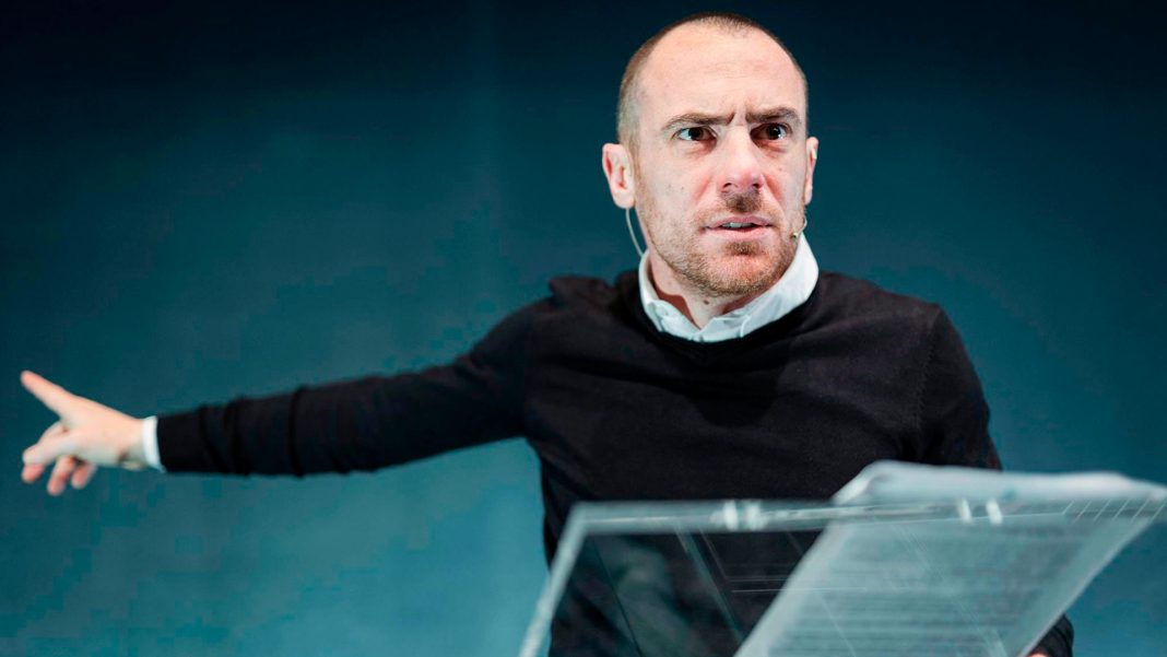 Ecco, il punto inquietante di tutto questo discorso è che Elio Germano non ci sta parlando del presente ma la sua è una rilettura di Mein Kampf, della autobiografia di Hitler, niente po’ po’ di meno.
