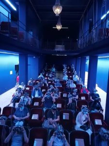 Il visore si spegne e parte l’applauso, vivo, caldo, reale, sicuro nella sala vuota dove quel signore è scomparso e restano i nostri vestiti colorati che la riempiono d’estate.