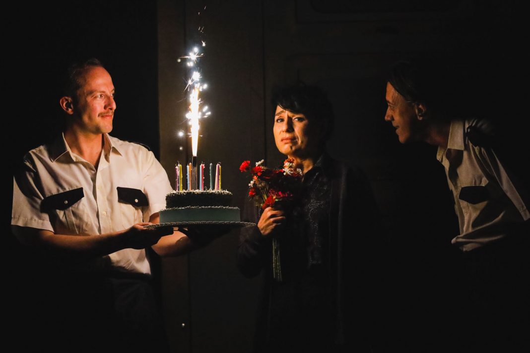 “PINTER PARTY – Il bicchiere della staffa, Il linguaggio della montagna, Party Time”, di Harold Pinter, regia Lino Musella, con Lino Musella, Paolo Mazzarelli, Betti Pedrazzi, Totò Onnis, Eva Cambiale, Gennaro Di Biase, Dario Iubatti, Ivana Maione, Dalal Suleiman, in video Matteo Bugno, scene Paola Castrignanò, costumi Aurora Damanti, musiche Luca Canciello, disegno luci Pietro Sperduti, video Matteo Delbò, coreografia Nyko Piscopo. Produzione Teatro di Napoli – Teatro Nazionale.