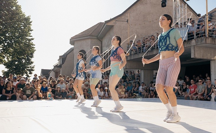 Hit out di Parini Secondo è un progetto coreografico e musicale che usa il salto della corda come strumento percussivo. Le performer intrecciano ritmo e movimento in una partitura fisica e sonora: l’allenamento diventa gesto performativo, eco di resistenza e ribellione al restare fermi.