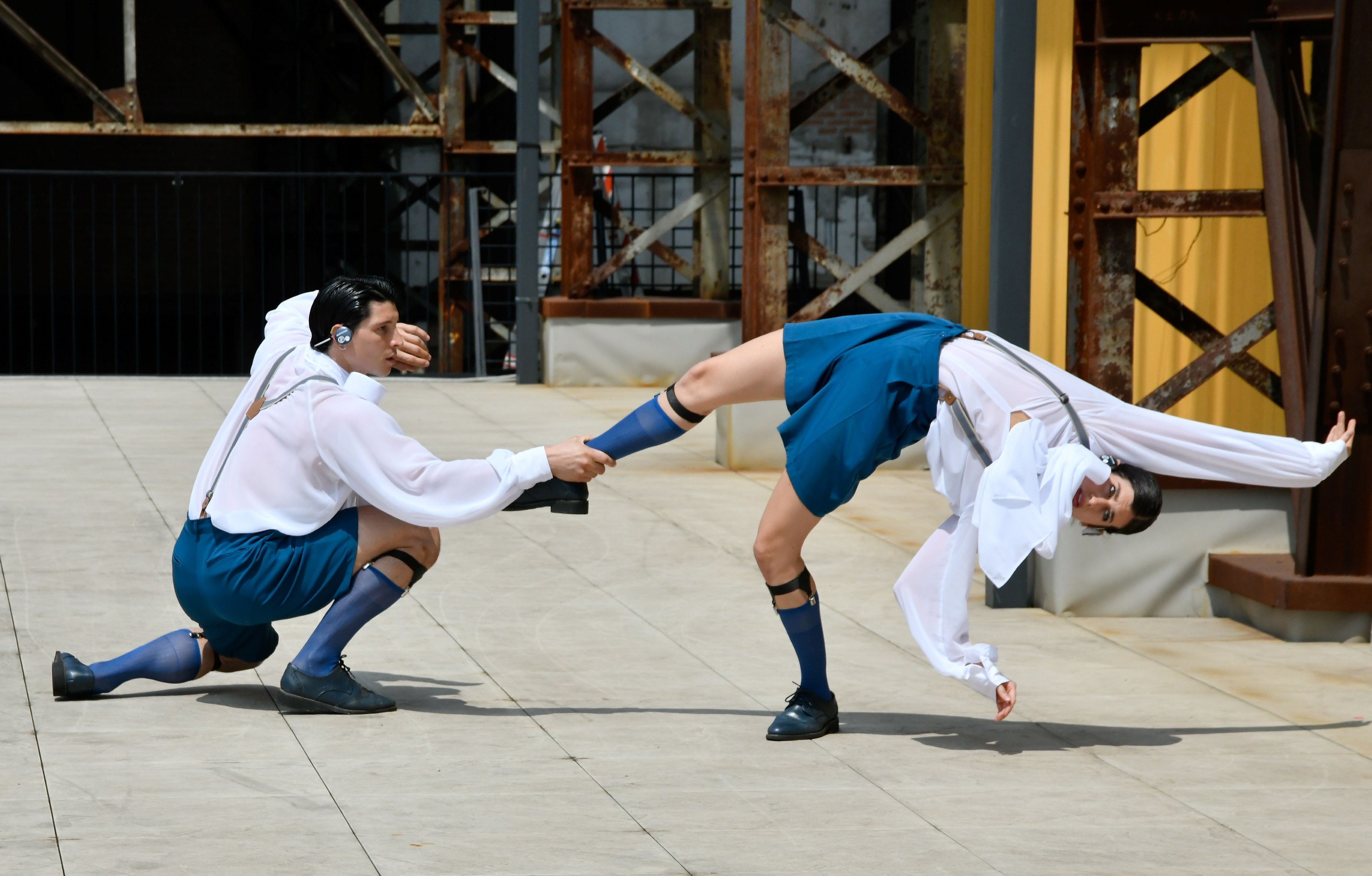 Il percorso tra i due vulcani fratelli, come vengono definiti nel titolo, viene condotto con nove danzatori della sua compagnia e di tre percussionisti del gruppo italo-giapponese Munedaiko, consacrati alla pratica e alla valorizzazione del Taiko, il grande tamburo della tradizione nipponica, considerato specchio dell’anima di chi suona. La loro ricerca musicale si innesta sul paesaggio sonoro composto da Giovanni Seminerio.