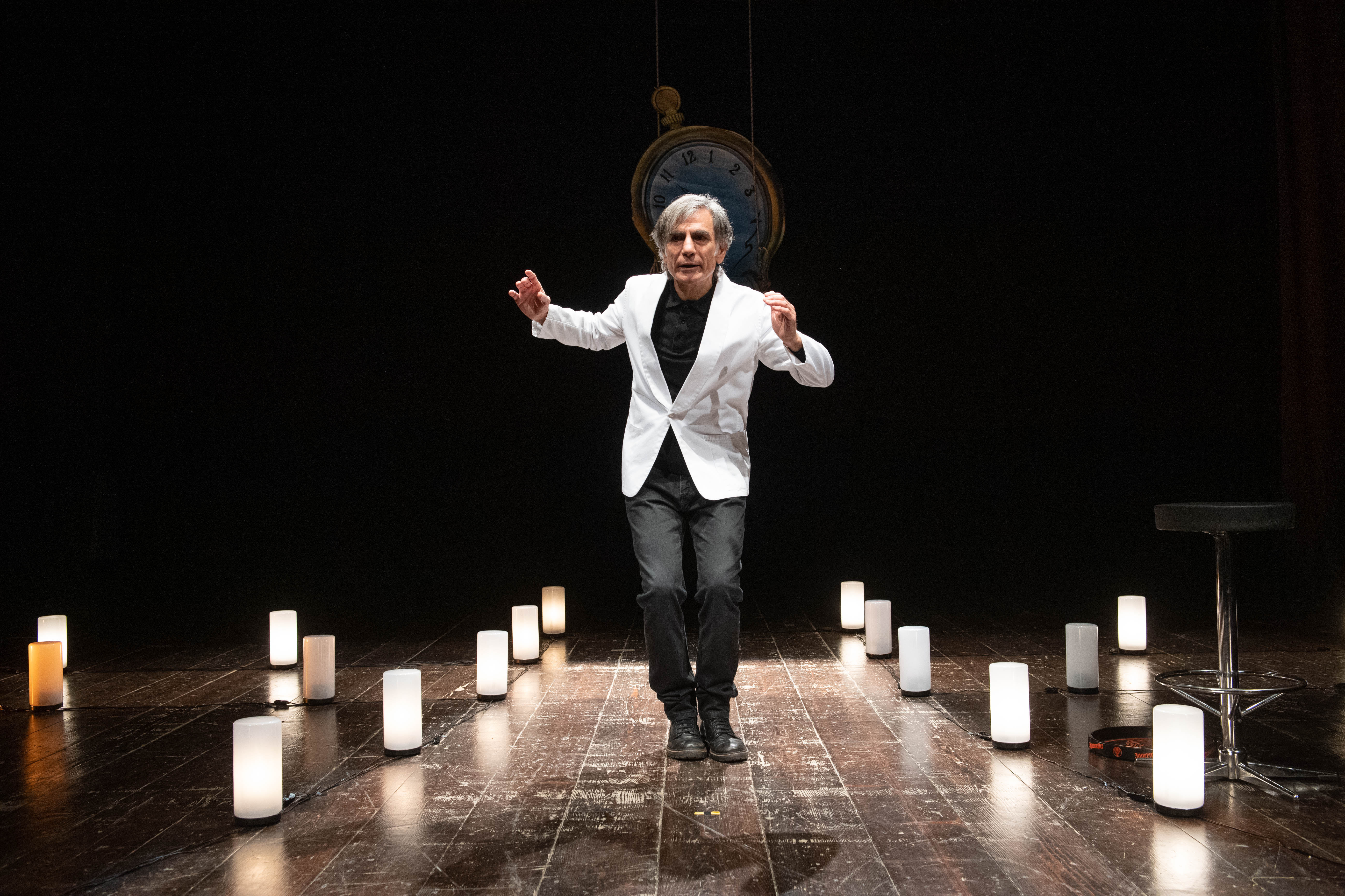 In scena Marco Cacciola, in cui la voce dell’attore e quella di Bernini si rincorrono senza soluzione di continuità a generare sulla scena – come scolpendo nel vuoto – presenze, figure e ricordi.