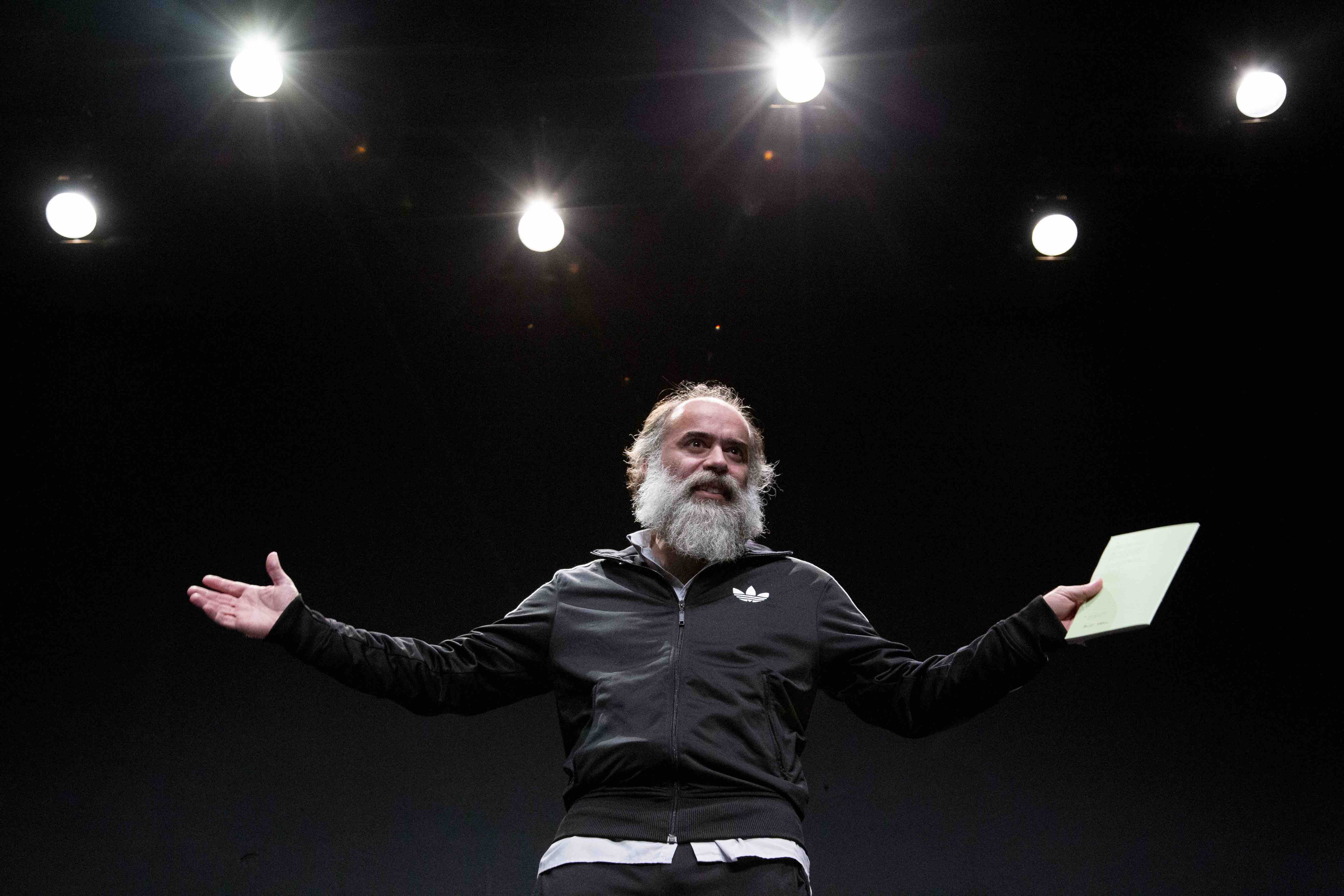 Si parte da qui per scavare la relazione enigmatica tra autore e attore, costruendo un passaggio segreto tra il mondo della realtà e quello della finzione. Un labirinto narrativo dove la drammaturgia di Rodrigues fonde l’Edipo Re di Sofocle con le lettere di un prigioniero a sua madre, scritte tra le righe di un’edizione della tragedia greca trovata nella biblioteca del carcere, per tornare subito al presente, in quel teatro dove un attore si rivolge direttamente agli spettatori creando un rapporto intimo costruito sul limite indistinguibile tra ciò che è reale e ciò che non lo è.