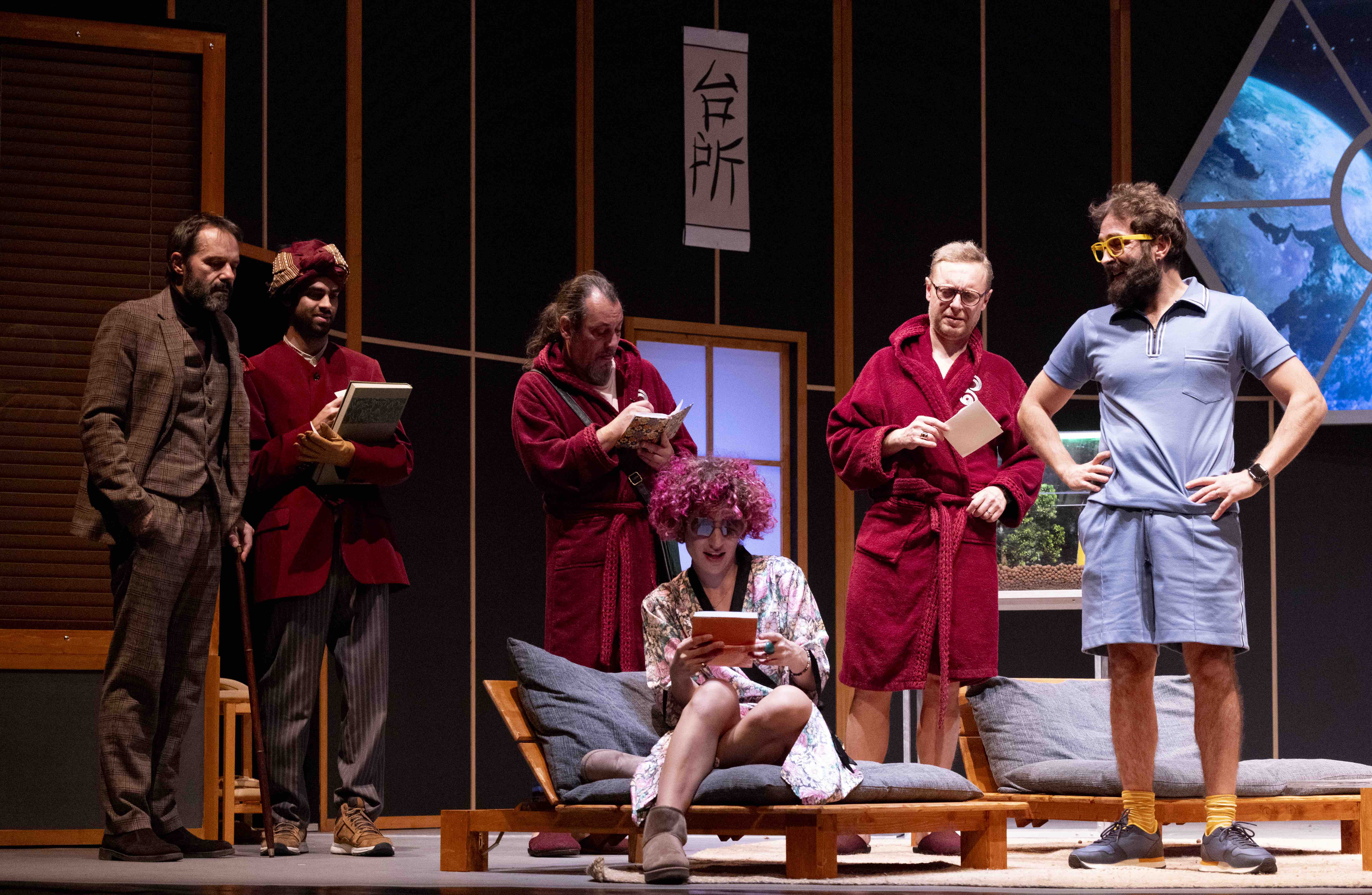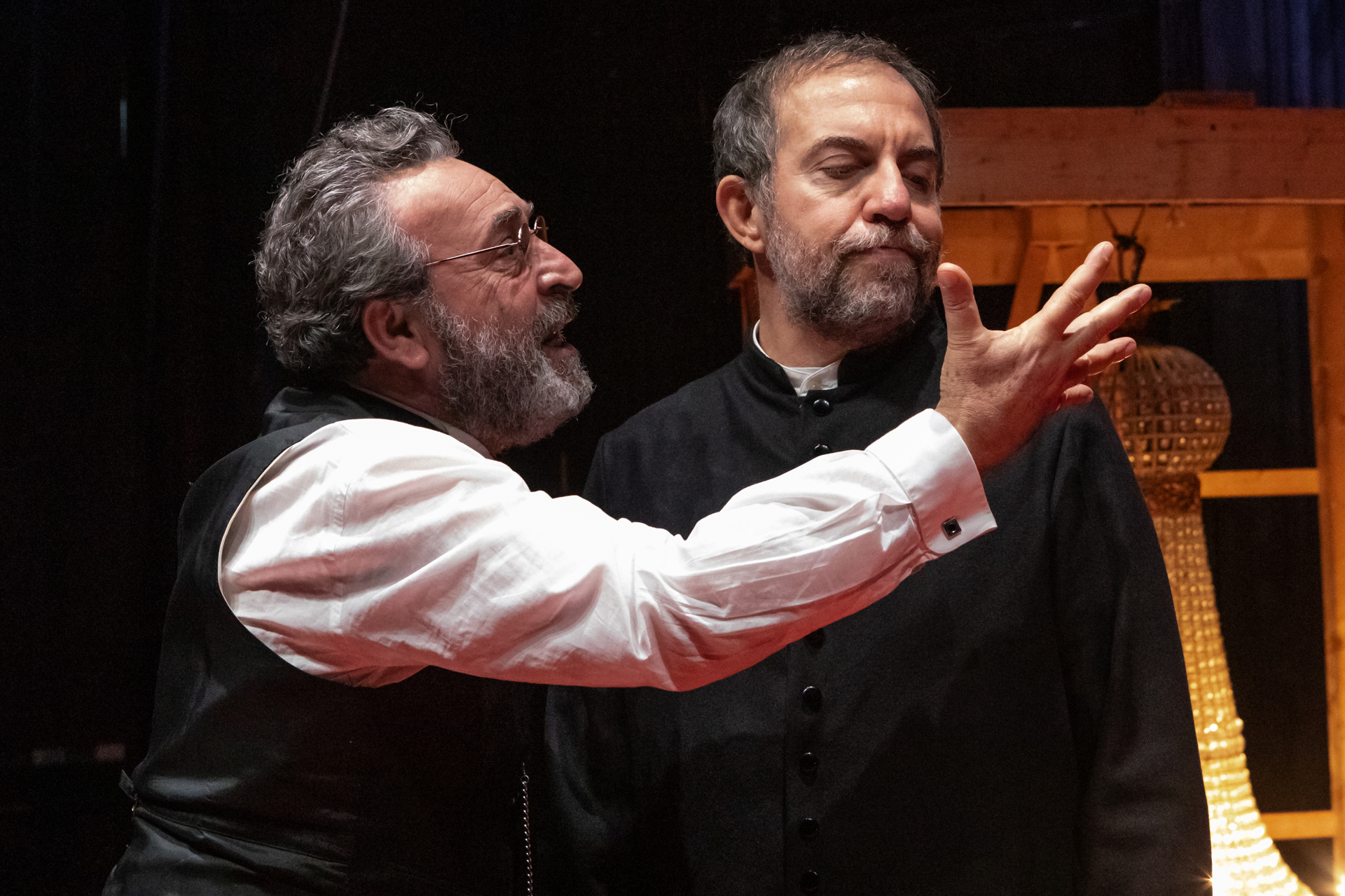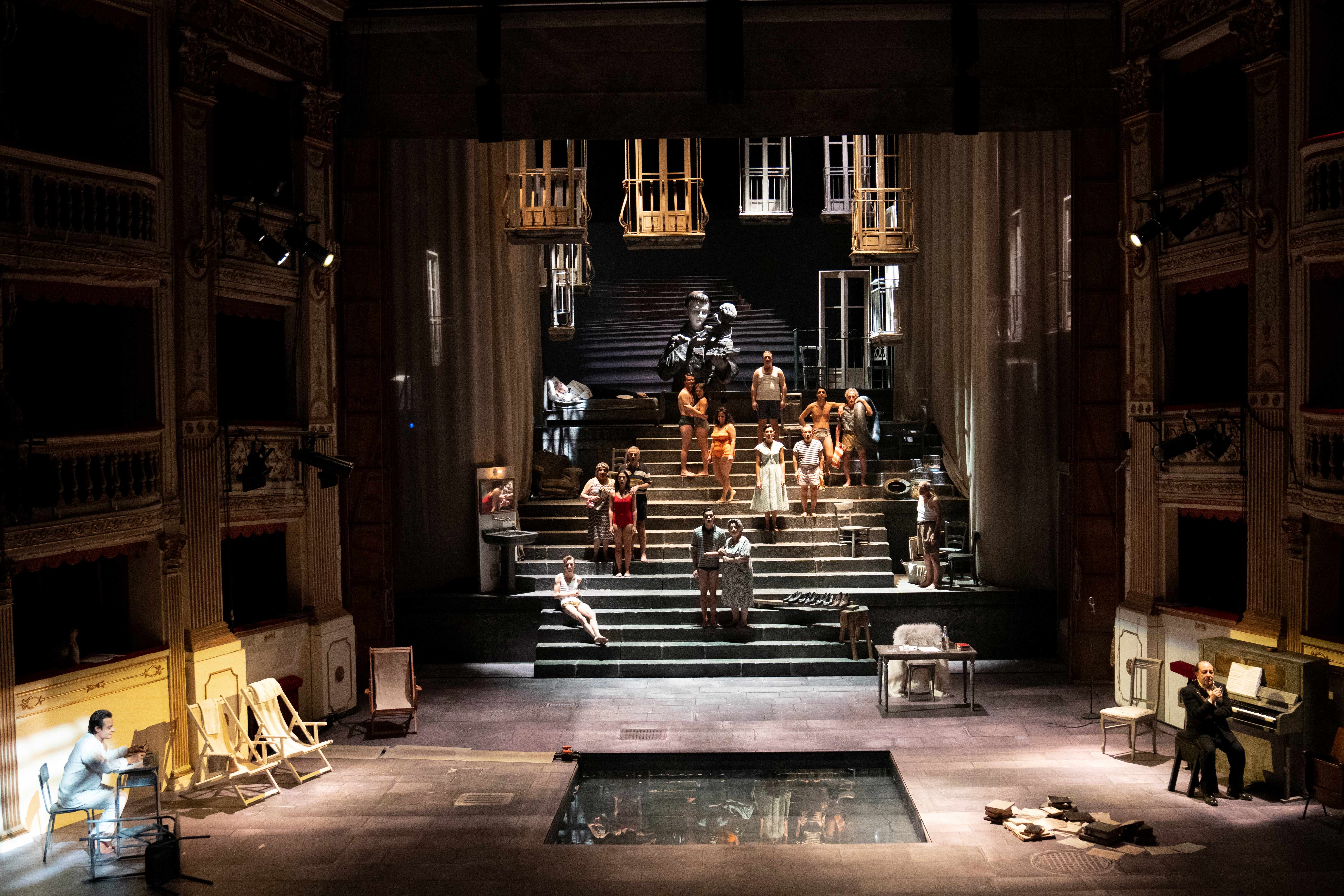 Con Lino Musella, Tonino Taiuti, Lello Giulivo, Giuseppe Affinito, Flo, Vincenzo Pasquariello, Ivano Battiston, Lello Pirone, Eleonora Limongi, scene e luci Gianni Carluccio, costumi Daniela Cernigliaro, musiche Pasquale Scialò, suono Hubert Westkemper, coreografie Luna Cenere. Produzione Teatro di Napoli-Teatro Nazionale, al Teatro Mercadante, dal 1o dicembre al 7 gennaio.
