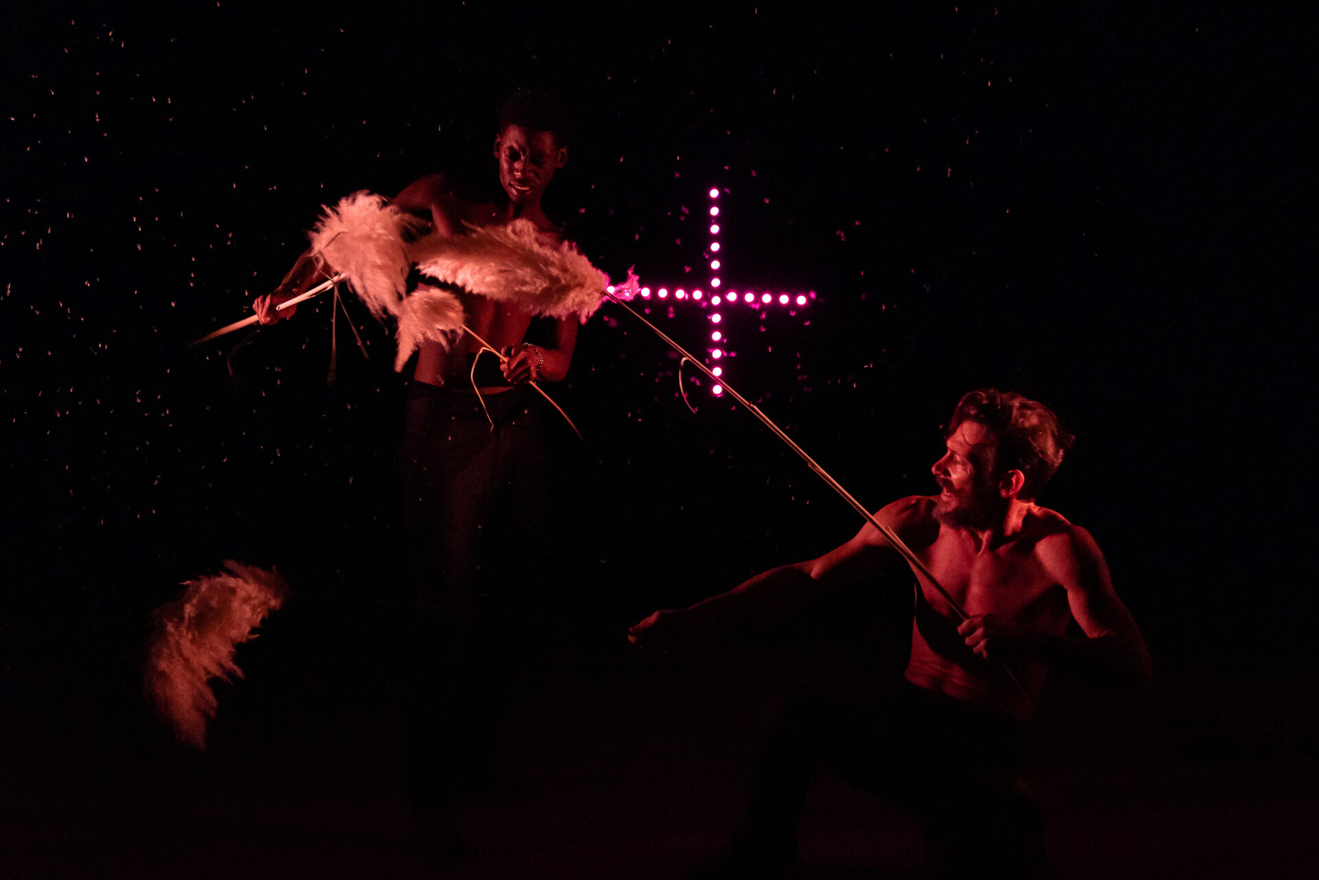 Nell’ultimo lavoro di Vandekeybus, coprodotto dal Teatro Comunale di Ferrara, un nuovo cast di attori e danzatori si avventura nel labirinto dei racconti antichi che ruotano intorno agli dei, come proiezioni delle esperienze più varie della vita umana. Sul palco come sullo schermo, la danza si fonde con le poesie per creare un unico nuovo mondo. Non mancano le collaborazioni di assoluto rilievo, dalla leggenda del flamenco Israel Galván, alla pittrice e contorsionista scozzese Iona Kewney, che interpreterà Efesto, dio del fuoco.