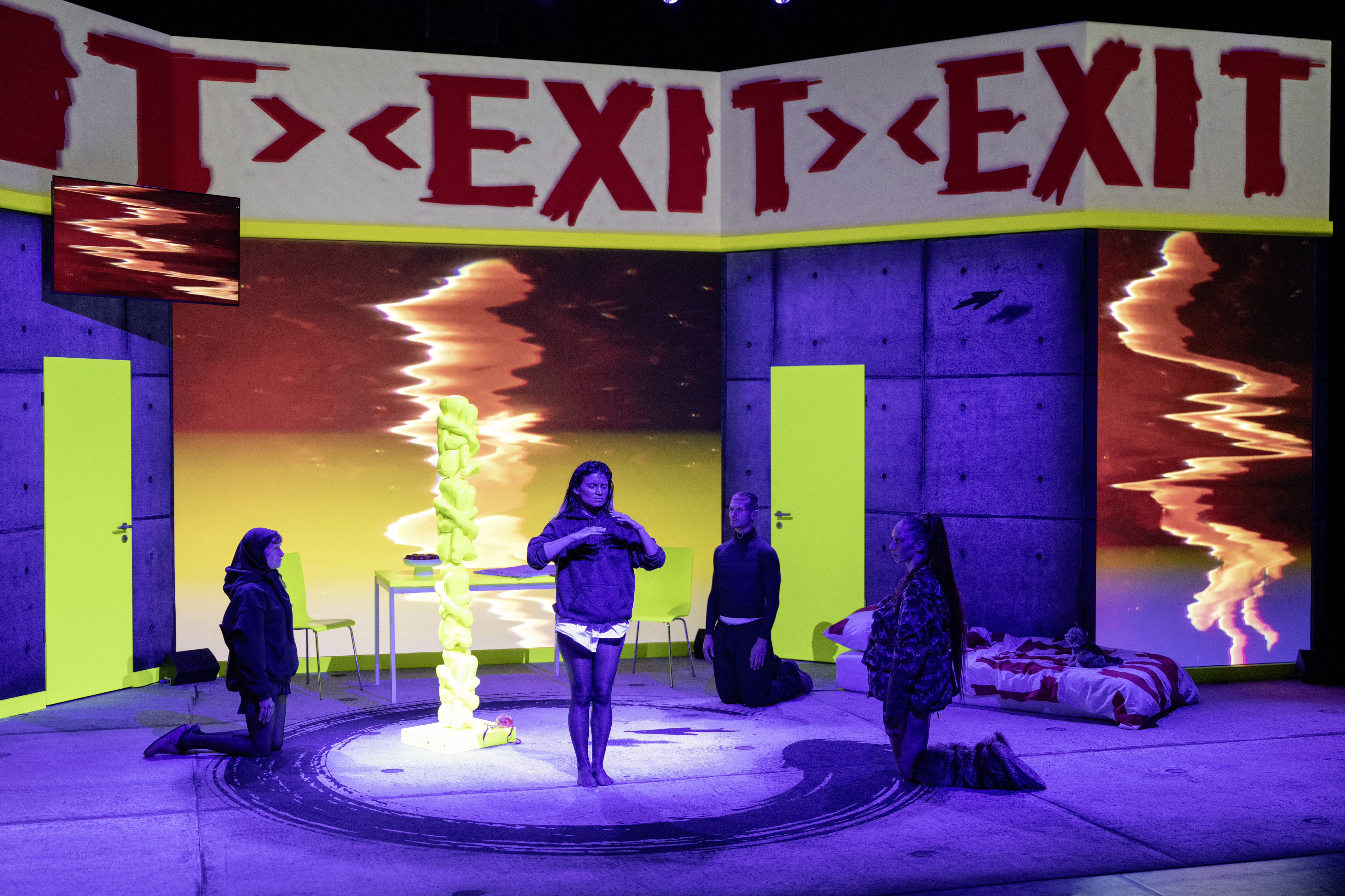La regista tedesca Susanne Kennedy, il 19 e il 20 settembre, debutta per la prima volta al festival Romaeuropa, sul palco del Teatro Argentina, con il suo Angela (a strange loop). In scena un’influencer – donna/ragazza/bambina – alle prese con una misteriosa malattia di cui poco è dato sapere se non le poche descrizioni condivise online con i suoi followers. Il fidanzato, la sua migliore amica, persino sua madre entrano ed escono dalla sua vita come da una sitcom televisiva. I loro dialoghi scorrono pre-registrati mentre gli attori li incarnano in uno straniante playback. Una misteriosa figura, come emersa da un videogame, accompagna il percorso di Angela. Dalla nascita alla morte, la sua esistenza è narrata da un avatar, un animale peloso ma con la voce umana a cui è affidato il compito di tracciare le fila delle differenti fasi dell’esistenza della protagonista.