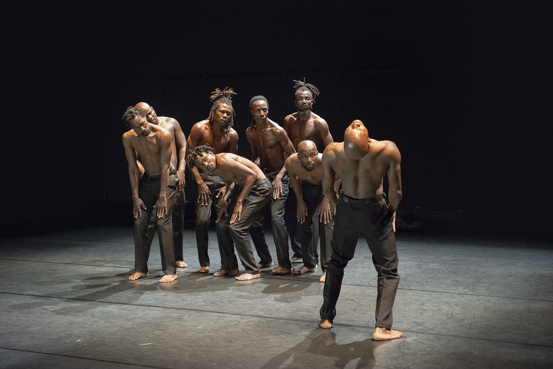 In questa proposta minimalista, incentrata sull’essenza dell’essere umano, movimento, voce, ritmo, respiro, musicalità riempiono il palco di potenza. Ciascuno dispiega storie e immaginazioni che si intersecano, convivono, si sfregano l’una contro l’altra, si scontrano, come gli atomi che formano la materia e il cui incontro ha creato il mondo che conosciamo.