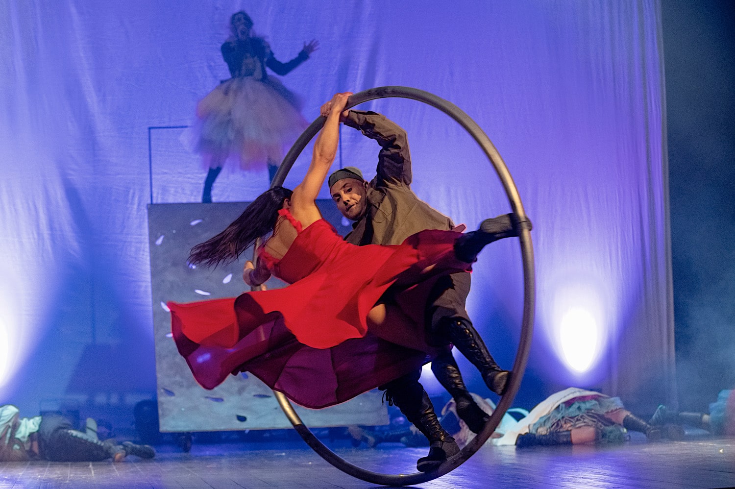 Il Circo che danza è una iniziativa ideata da Alberto Longo, direttore generale del CPCCL, e Valerio Longo, danzatore e coreografo, vice direttore artistico del Balletto di Roma, per il Teatro Parioli Costanzo di Roma. È l’incontro delle discipline coreutiche e quelle del circo per condividere la bellezza della contaminazione tra le arti sceniche degli artisti circensi del Centro di Produzione di Circo Contemporaneo Lazio, della poliedrica compagnia ArteMakìa, e con i danzatori del Balletto di Roma. Quest’ultimi presenteranno alcuni estratti dal repertorio più recente e coreografie appositamente create per l’occasione, restituendo una fisicità fatta di storia e insieme di contaminazione col nuovo.