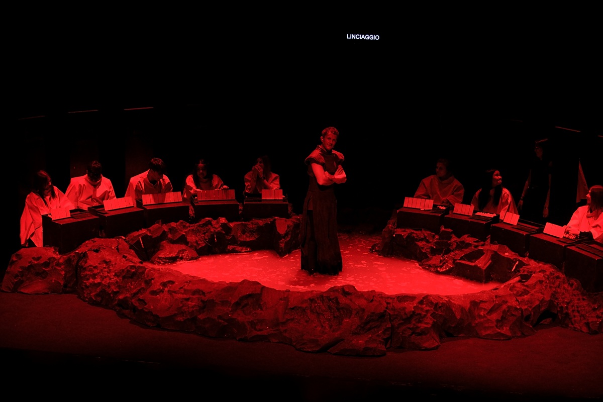Attraverso una drammaturgia in cui la voce monologante dell’attore Marco Cacciola e quella di Bernini si rincorrono e sovrappongono senza soluzione di continuità a generare sulla scena, come scolpendo nel vuoto, presenze, figure e ricordi, il testo di Martinelli ci mostra un Seicento che parla di noi, sospeso tra il secolo della Scienza nuova e l’attuale imbarbarimento, sempre più incombente.