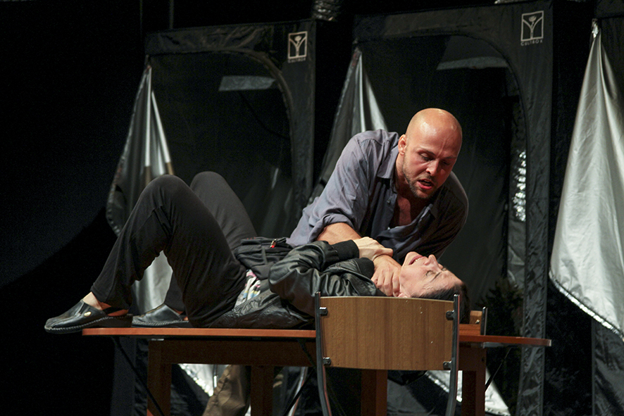 “Thanks for vaselina”, drammaturgia Gabriele Di Luca, regia Gabriele Di Luca, Massimiliano Setti, Alessandro Tedeschi, costumi e scene Nicole Marsano e Giovanna Ferrara, musiche originali Massimiliano Setti, luci Diego Sacchi, con Gabriele Di Luca, Massimiliano Setti, Pier Luigi Pasino, Sonia Barbadoro, Carlotta Crolle. Produzione Carrozzeria Orfeo, Marche Teatro. A Milano, Teatro Elfo Puccini, dal 26 al 30 aprile.