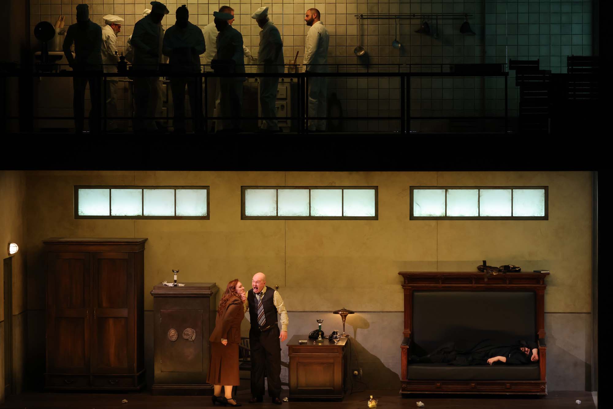 La regia è affidata a Vasily Barkhatov, enfant terrible del teatro musicale russo, noto per le sue letture crude, psicologiche, mai concilianti. Anche qui la mano è riconoscibile: è un allestimento che non cerca compromessi. Violenza domestica, desiderio che sfugge al controllo, sopraffazione maschile, omicidi a catena. La Scala aveva avvertito il pubblico della presenza di scene violente, e non era un eufemismo. Ma alla fine l’opera conquista comunque oltre dieci minuti di applausi, segno che la sala, pur turbata, ha riconosciuto la forza dell’impianto teatrale.