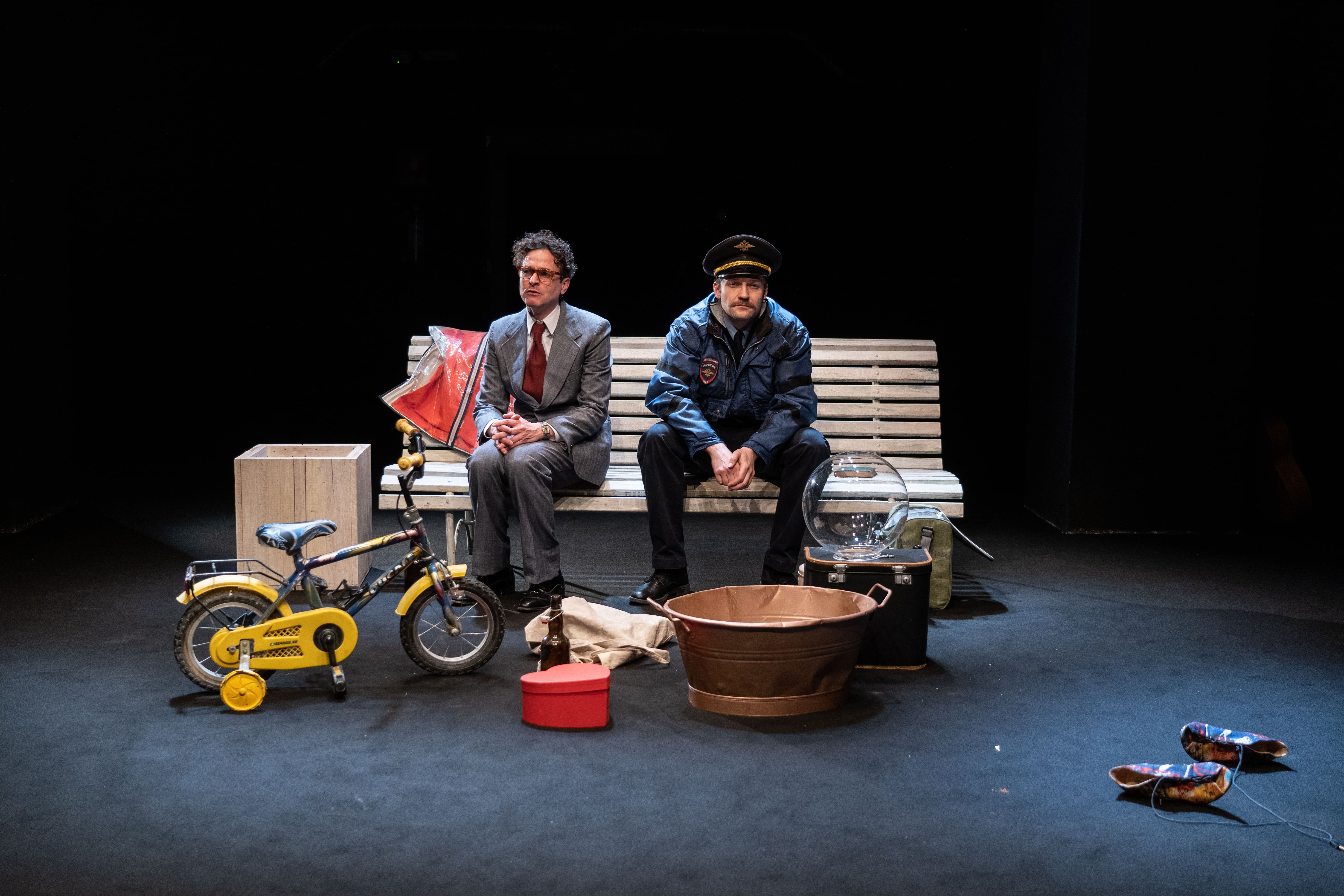 Esilarante, nel loro pacato discorrere, il dialogo dai tempi perfetti tra Pavel Zelinskiy e Luca Nucera in Tragico suo malgrado che vede due amici di cui uno bisognoso di sfogarsi. Si ritrovano seduti su una panchina a parlare di incombenze quotidiane e fallimenti, tra oggetti strampalati e posture sbilenche, e rivelarsi alla fine incapaci di vero ascolto. Spassosissimo nella sua struttura comica da vaudeville è L’anniversario, ambientato nell’ufficio di una banca dove un ipocondriaco Presidente (Francesco Biscione), e con lui, un segretario frustrato, ossessivo, e misogino (Pino Tufillaro), si accinge a celebrare il quindicesimo anniversario della fondazione. S’accenderà una conversazione caotica e delirante a più voci all’arrivo della moglie sciocca e sventata, e con una donna petulante che destabilizzano la giornata ufficiale.