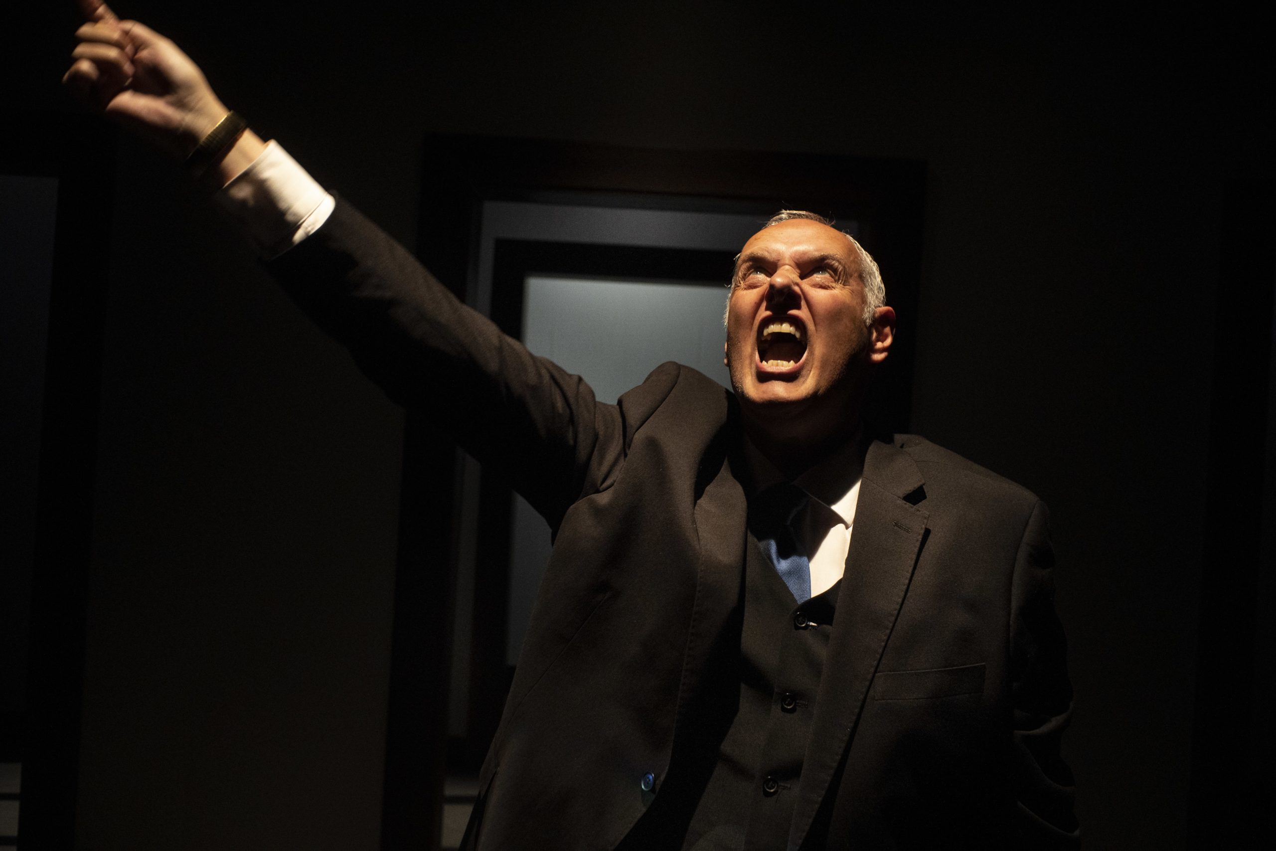 Garella dona una levità che illumina anche di ironia un orrore famigliare e scabroso al tempo stesso. La vicenda risulta subito efficace dal lucido nitore dello svolgimento scenico dentro un alone di borghesia formale e festosa, incorniciato da una scenografia espressiva per semplicità di segno: una lunga geometrica parete frontale con tre usci aperti e trascoloranti da dove escono e rientrano i personaggi – dai costumi che rimandano alle eleganti figure di Magritte, a Grosz, e al quadro “Il Quarto Stato” -, col finale inesorabile del contadino che riferisce di Julian divorato dai porci. Vicenda che verrà messa a tacere.