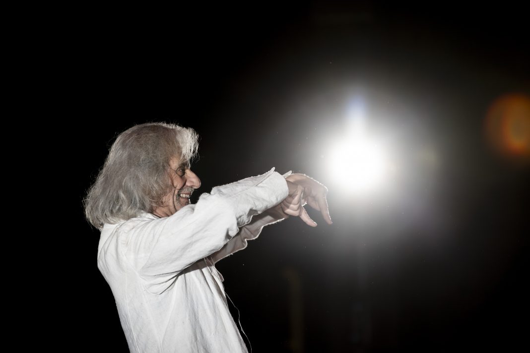 Così si muove Alessandro Bergonzoni, pronunciando e decostruendo e mutando parole, spostandole e riconnettendole nel flusso di una logica “schizoanalitica” (direbbe Félix Guattari), fulminea, evanescente, che illumina e acceca. Le mani nelle tasche del camice evocano moncherini che assolvono a posture attoriali strabilianti, la faccia i capelli di Bergonzoni sono immagine potente, segnata da anni di parole che troppi non osano dire: “Europa da ri-amare”, come esempio. Eppure, manca solo una “r”.