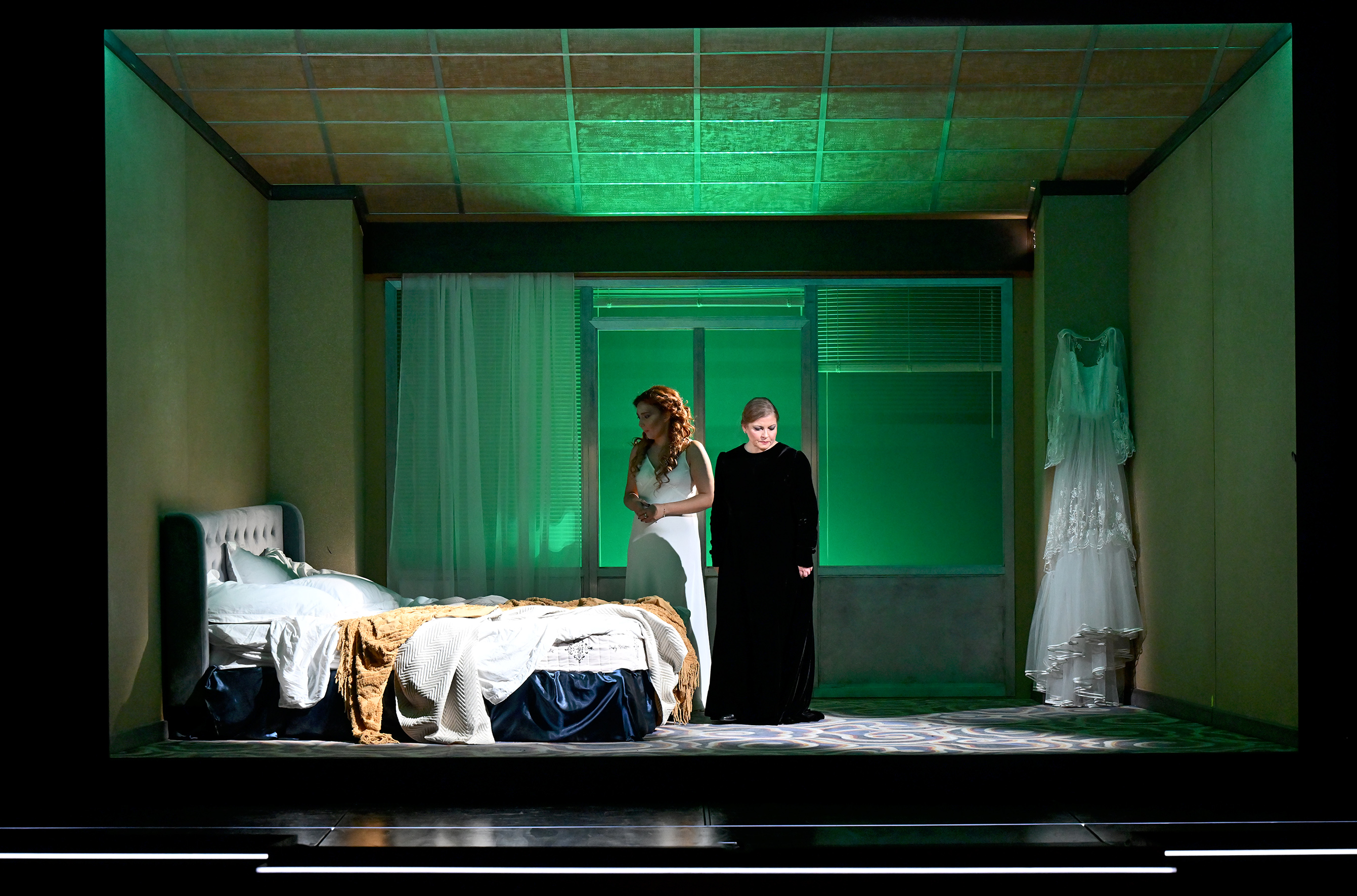 Esemplare in tal senso la sua regia dell’Otello. Fino a pochi anni fa, anche a Parma, si parlava della “disgraziata” fine di Desdemona come di un sacrificio. A questa immagine ormai desueta si va sostituendo quella, orrenda come il gesto maschile che la genera, di femminicidio. Non è dato sapere se si sia posto il problema ma Tiezzi ben lavora su gesti e spazi offerti dal sapientissimo libretto di Boito, seppur con qualche licenza (l’originario “soffocare” Desdemona non è strangolare), e nell’ultimo atto fa ricorso esplicito alla citazione dell’immagine: lui parla di Gregory Crewdson, ma ancor prima è chiaro il richiamo al Morning Sun di Hopper.