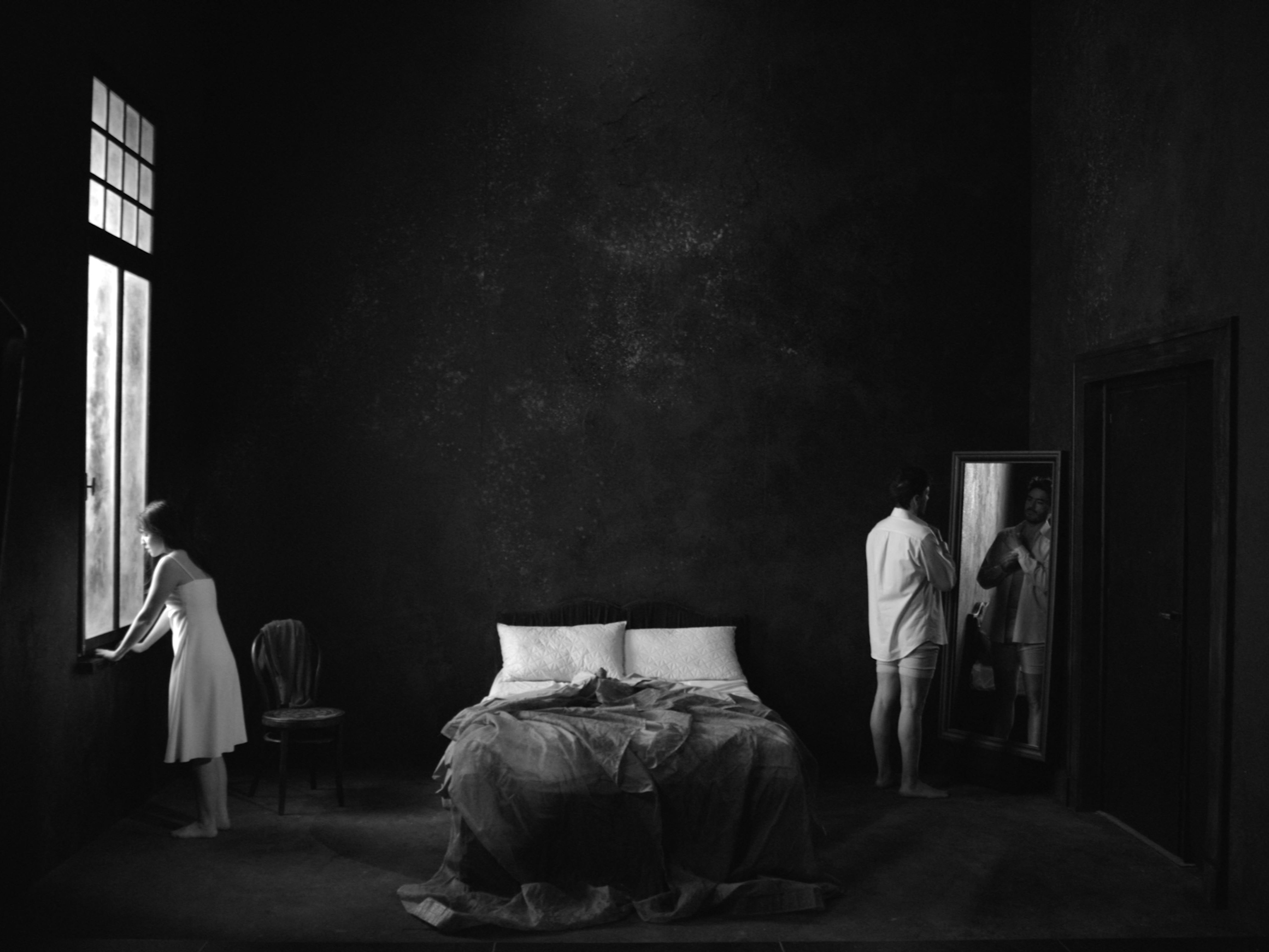 Nelle sue note di regia, Neshat ha dichiarato di aver riconosciuto in Orfeo «La storia giusta» per il proprio linguaggio visivo e concettuale, sottolineandone le dualità – amore e morte, cielo e inferno, coscienza e subconscio – e immaginando l’intera opera in bianco e nero, cifra distintiva della sua ricerca. Nella sua interpretazione, Orfeo è uomo contemporaneo, lacerato tra ego, narcisismo e amore incondizionato, incapace di elaborare il dolore per la perdita della moglie e del figlio. La discesa agli inferi diventa così un processo interiore, un paesaggio della coscienza in cui realtà e illusione, colpa e innocenza si confondono. Euridice, a sua volta, diventa un soggetto autonomo, segnato da una perdita che ne rende fragile e ambigua la restituzione alla vita. L’opera si apre e si chiude con film muti in bianco e nero, che aggiungono un ulteriore livello narrativo e intimo alla relazione tra i due protagonisti.